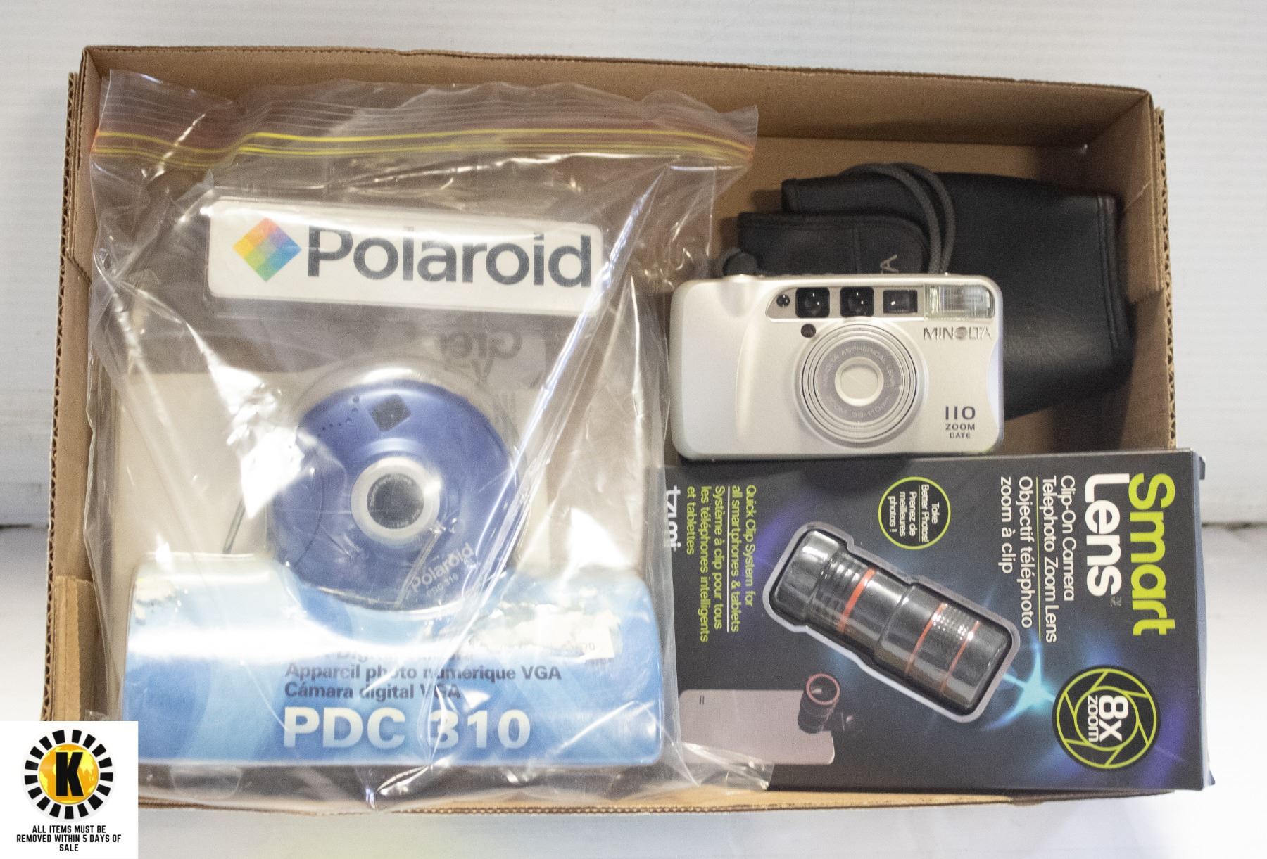 MINOLTA CAMERA, SMART LENS CLIPON CAM + POLAROID-