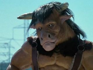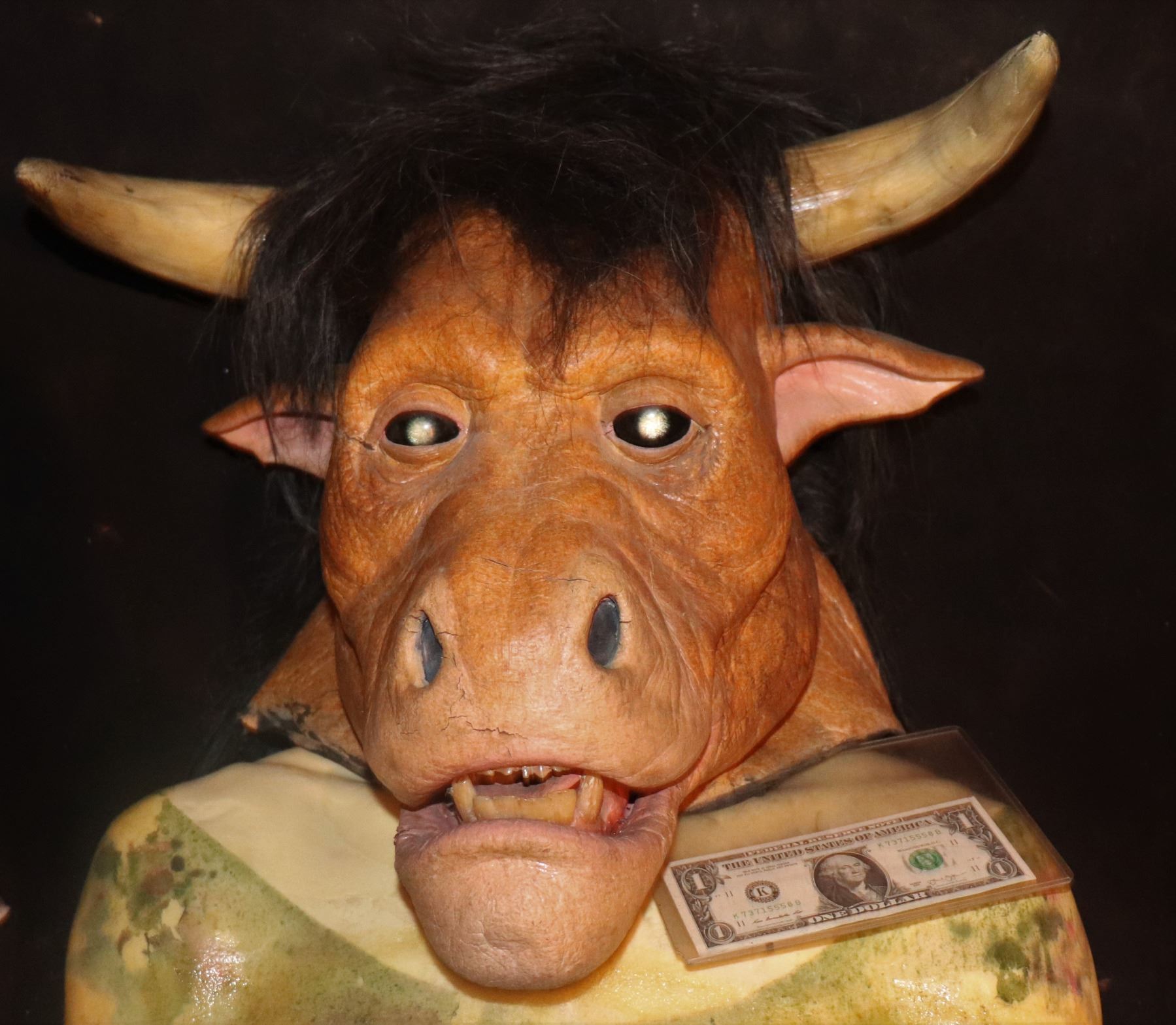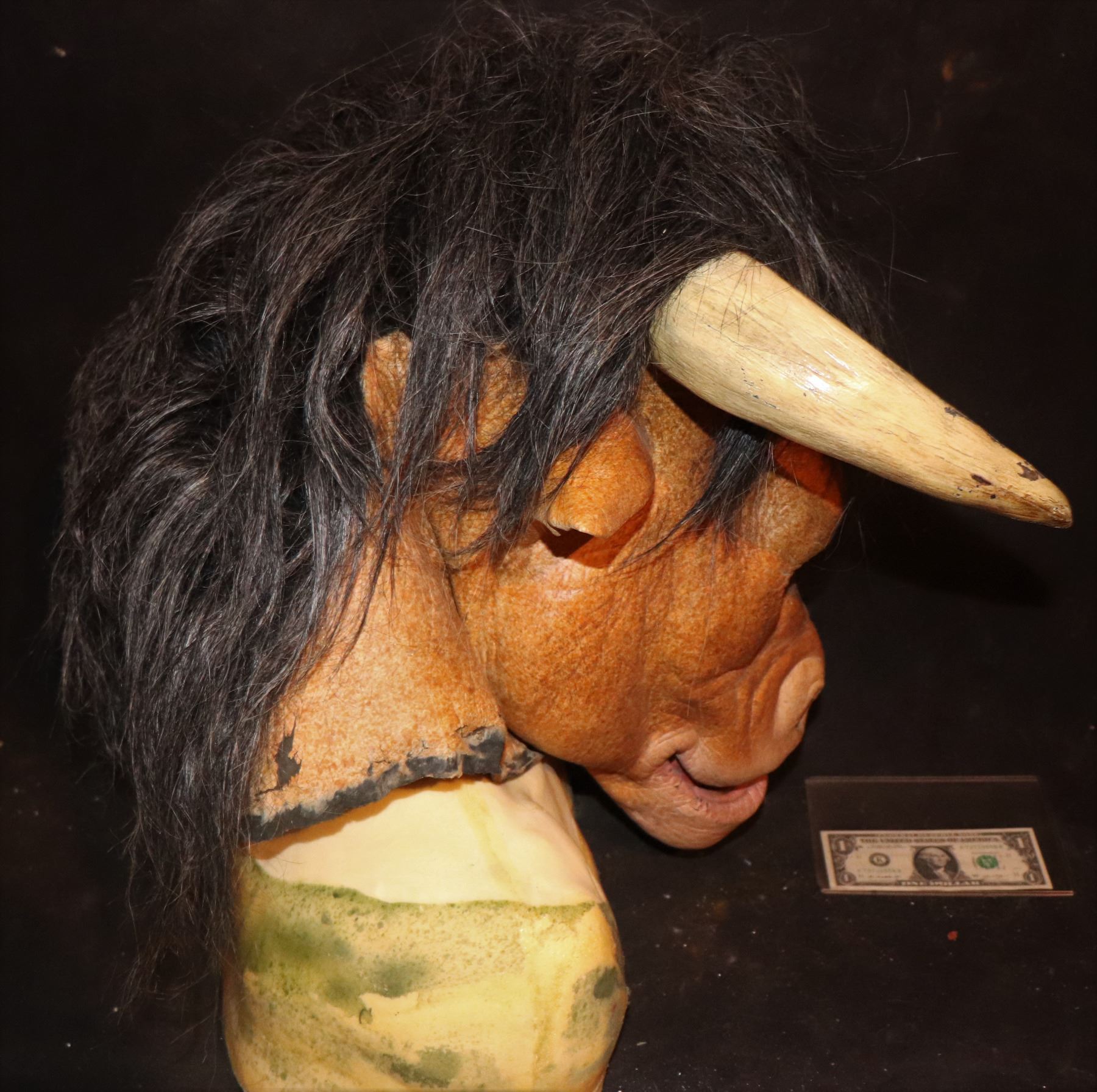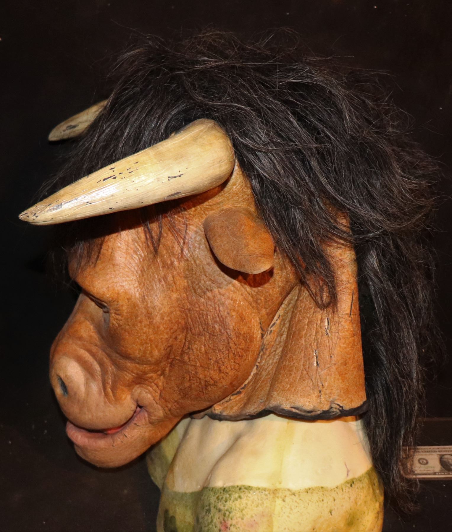 SUPER CAPERS MINOTAUR HERO ANIMATRONIC FULL HEAD MASK.
