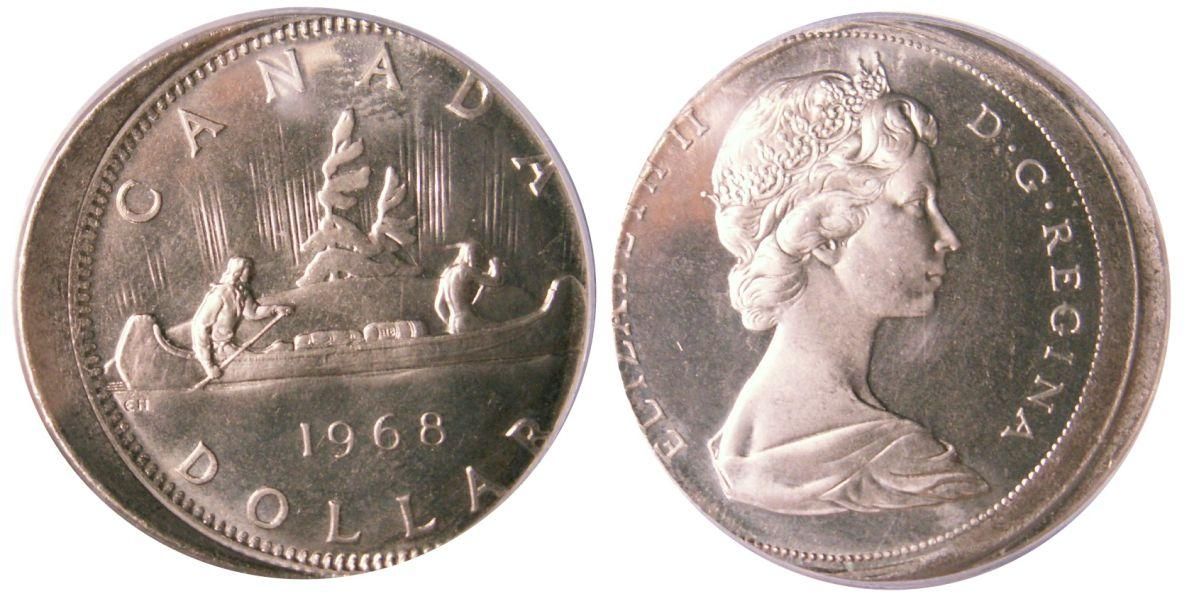 MINT ERROR COIN, 1968 $1 PCGS PL67 Struck 7% Off Center. Very scarce.