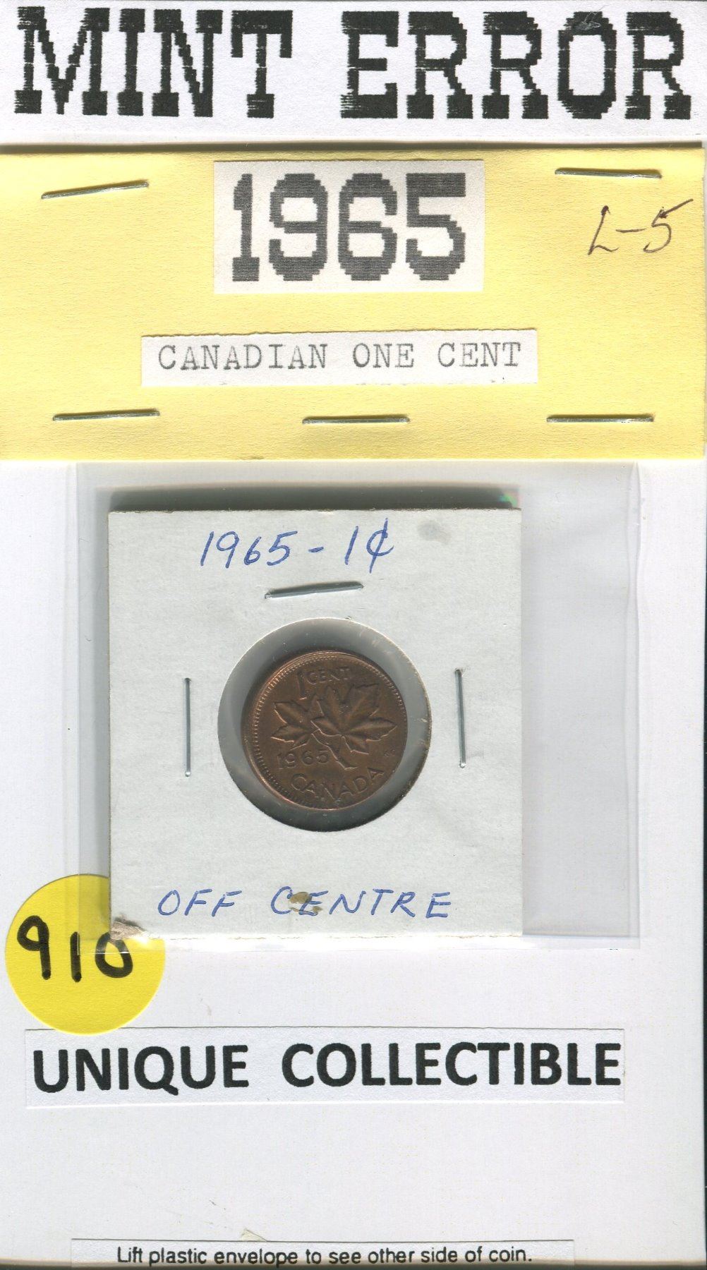 MINT ERROR PENNY (CANADA 1965) *STAMPED OFF CENTER-VERY UNIQUE!*