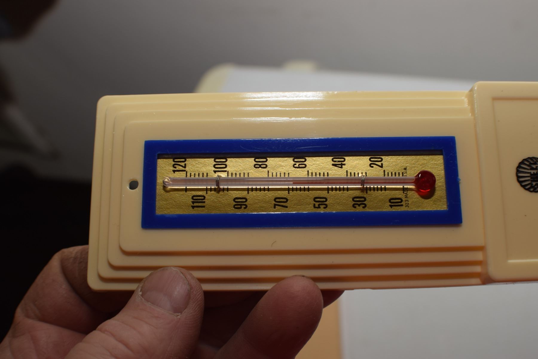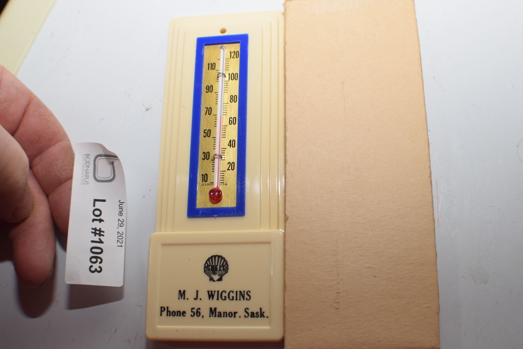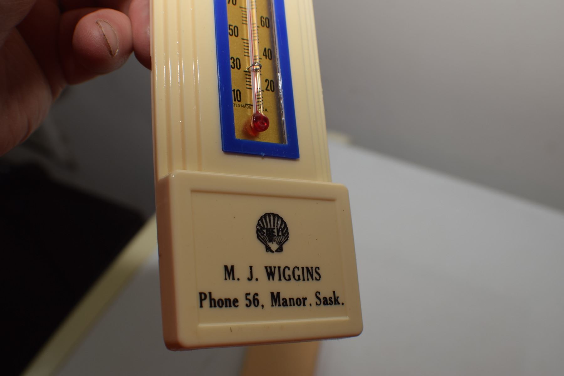MINT MANOR SASKATCHEWAN ART DECO SHELL OIL THERMOMETER AND BOX