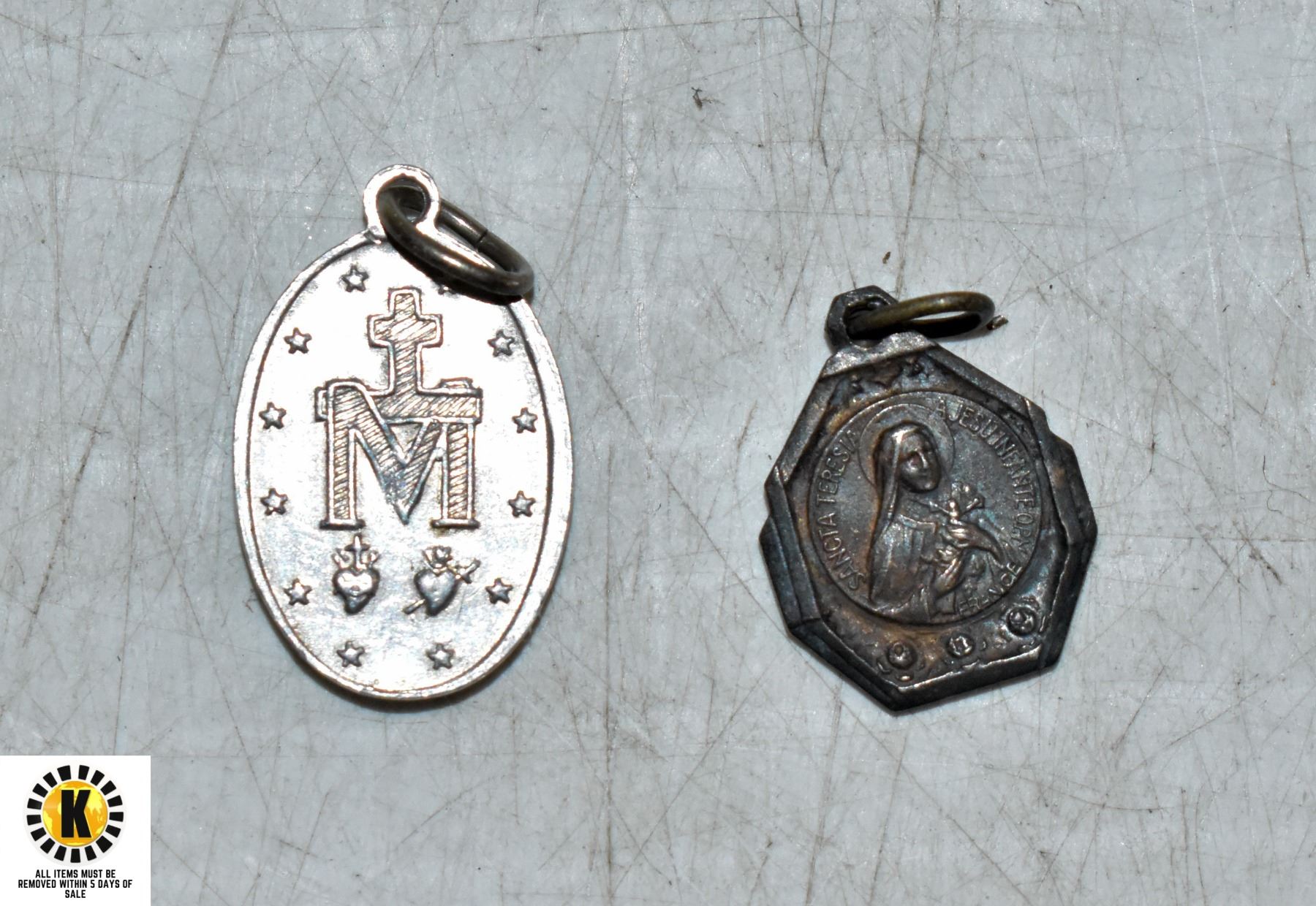 SIN PRAY FOR US WHO HAVE RECOURSE TO THEE + VINTAGE SACRED HEART OF JESUS OBVERSE VIRGIN MARY & CHILD