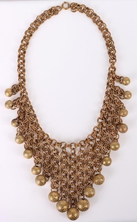 Early Miriam Haskell 9K yellow gold plated beaded necklace.