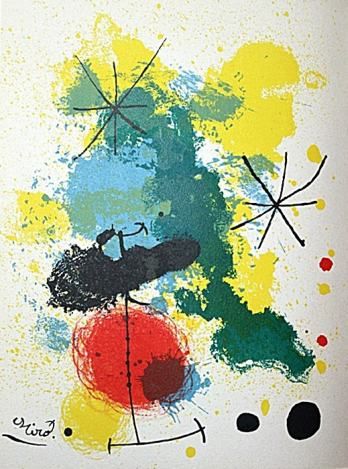 JOAN MIRO ORIGINAL LITHOGRAPH - ON VELIN D' ARCHES WOVE PAPER - PRINTED IN 1964 BY THE LEGENDARY ATELIER FERNAND MOURLOT, MOURLOT FRERES, PARIS FRANCE - ISSUED IN A LIMITED EDITION OF 2000 - SIGNED IN THE PLATE (NOT BY HAND) - SHEET SIZE: 10" X 7 1/2" (255 X 185 MM) - PROFESSIONALLY FRAMED AND MATTED - THIS MIRO ORIGINAL LITHOGRAPH IS FROM THE SCARCE AND LAVISHLY-PRODUCED LIMITED EDITION CATALOGUE, "PRINTS FROM THE MOURLOT PRESS". PUBLISHED IN 1964 BY MOURLOT ON THE OCCASION OF THEIR LANDMARK TRAVELING EXHIBITION, WHICH WAS SPONSORED BY THE FRENCH EMBASSY AND THE SMITHSONIAN - THE CATALOG WAS LIMITED TO 2000 COPIES ON VELIN DE ARCHES WOVE PAPER AND 200 COPIES ON VELIN DE RIVES PAPER WHICH WERE RESERVED FOR THE ARTISTS