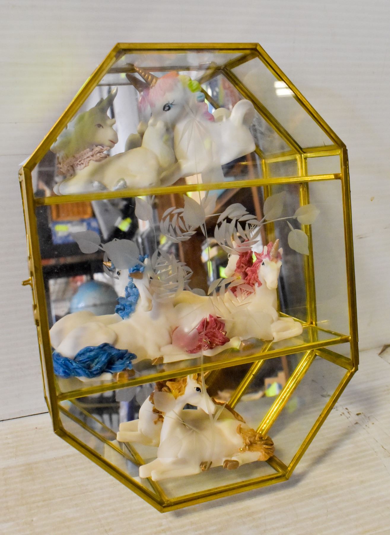 MIRRORED CASE FILLED WITH VINTAGE UNICORNS
