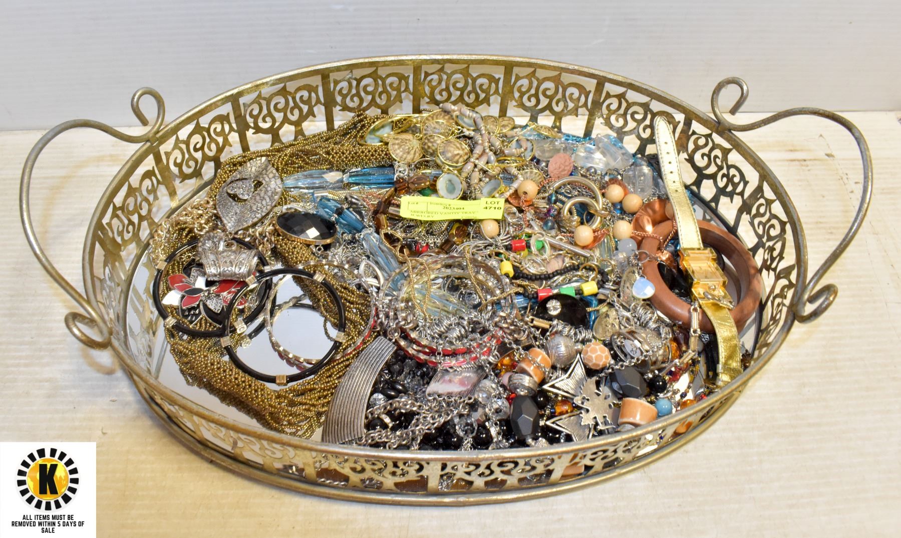 MIRRORED VANTIY TRAY WITH JEWELRY