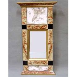 SPEGEL, S.K "GLASMÄSTARSPEGEL" DEKOR AV MARMORIMITATION, FÅGLAR OCH PUTTI PÅ GLAS, EMPIR, 1800-TALETS FÖRSTA HÄLFT, H54, B28