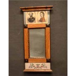 SPEGEL, REKTANGULÄR, UNDERDEL MED BLOMDEKOR PÅ GLAS, GLASAD ÖVERDEL MED SENARE LITOGRAFIER AV OSCAR II OCH SOFIA, EMPIR 1800-TALETS FÖRSTA HÄLFT, H90, B45