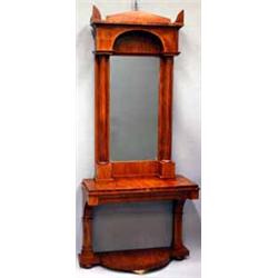 SPEGEL MED KONSOLBORD, ALM, KONSOLBORD MED SVÄNGD BOTTENPLATTA, SPEGEL MED FRISTÅENDE KOLONNER, TYMPANONFORMAT KRÖN, EMPIR TIDIGT 1800-TAL, H229, B94, D45