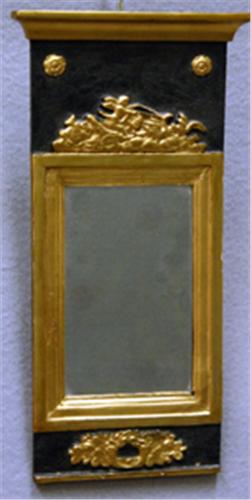 SPEGEL, FÖRGYLLD, SVÄRTADE FÄLT MED ORNAMENTIK I RELIEF, KARL-JOHAN 1800-TALETS FÖRSTA HÄLFT, H46, B23 (NEDTILL SPÅR EFTER SENARE MONTAGE)