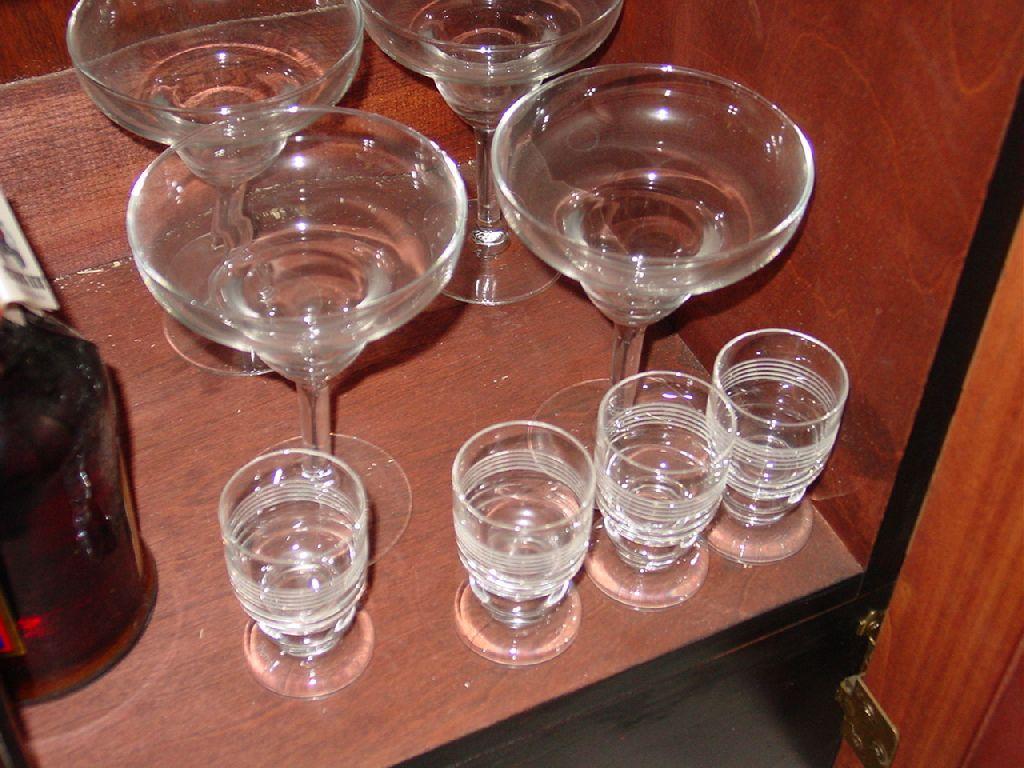 MISC BAR ACCESSORIES, SETS OF CRYSTAL WINE GLASSES, HIGH BALLS, SHOT GLASSES AND WATER GLASSES