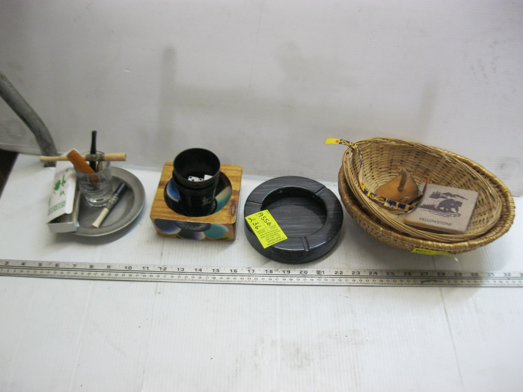 MISC. BASKETS, CIGARETTE HOLDERS, ASHTRAY, ETC.