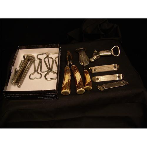 MISC. BOTTLE OPENERS AND nutcrackers to include 1 carved horn set and a horse head bottle opener