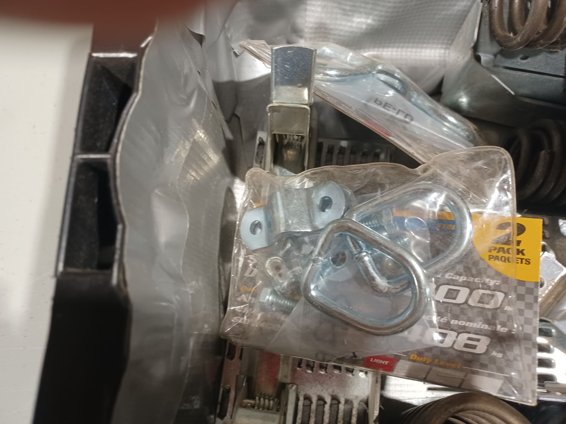 MISC BOX OF TOOL HANGERS, HOOKS ECT