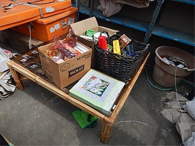 MISC BOXES AND GLASS TOP TABLE