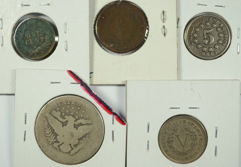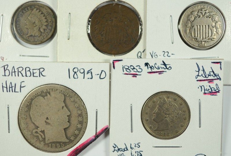 MISC COIN LOT (1862-1C, 1864-2C, 1868-5C, 83 N/C-5C, 1895-O-50C)