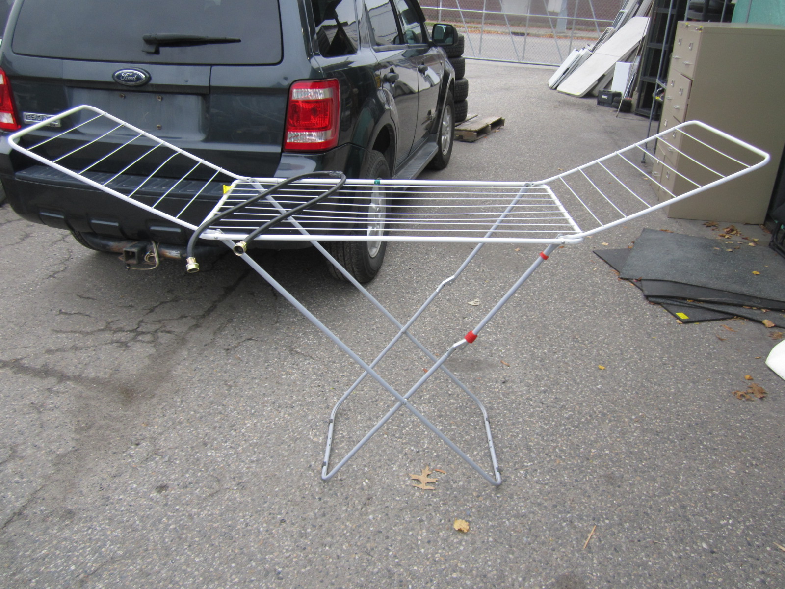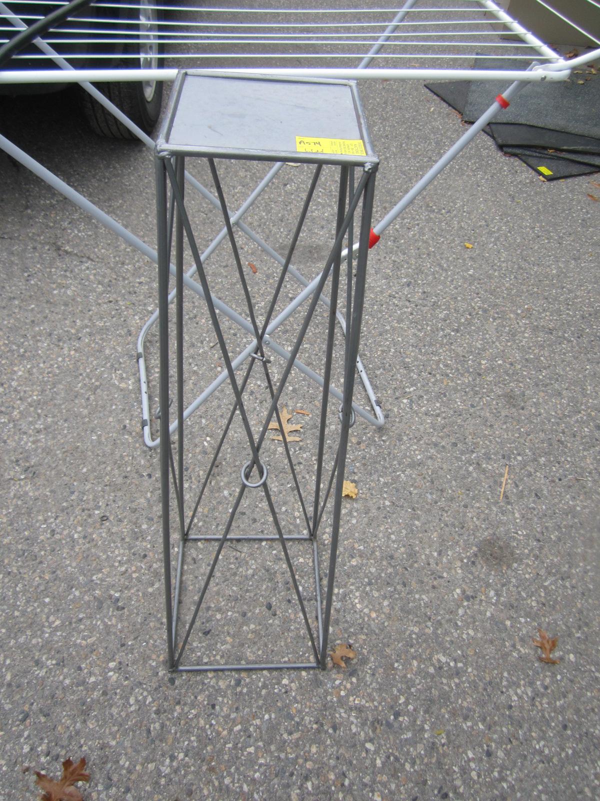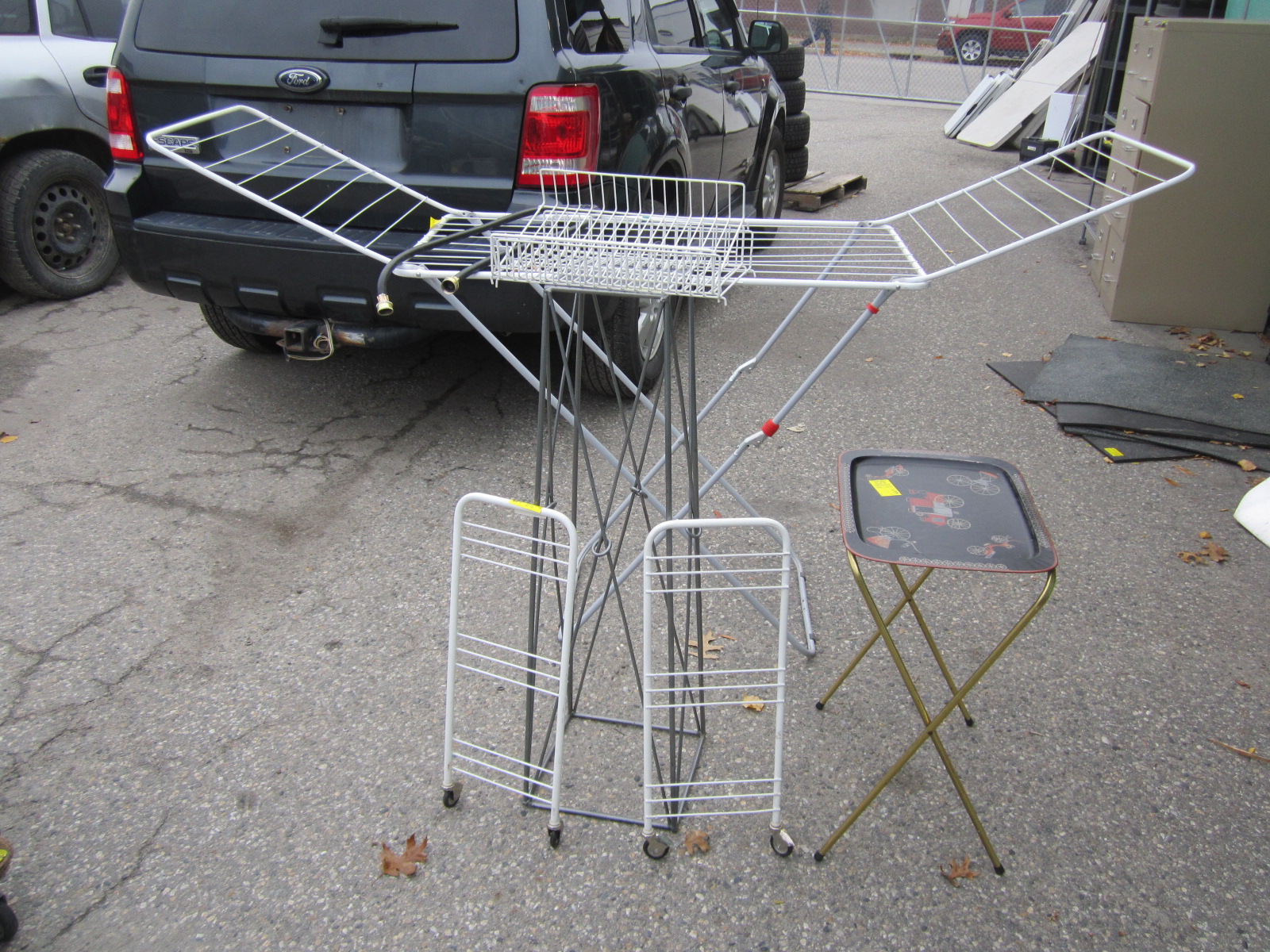 MISC. DRYING RACKS, FOLDING DINNER TABLES, PLANT STAND, ETC.