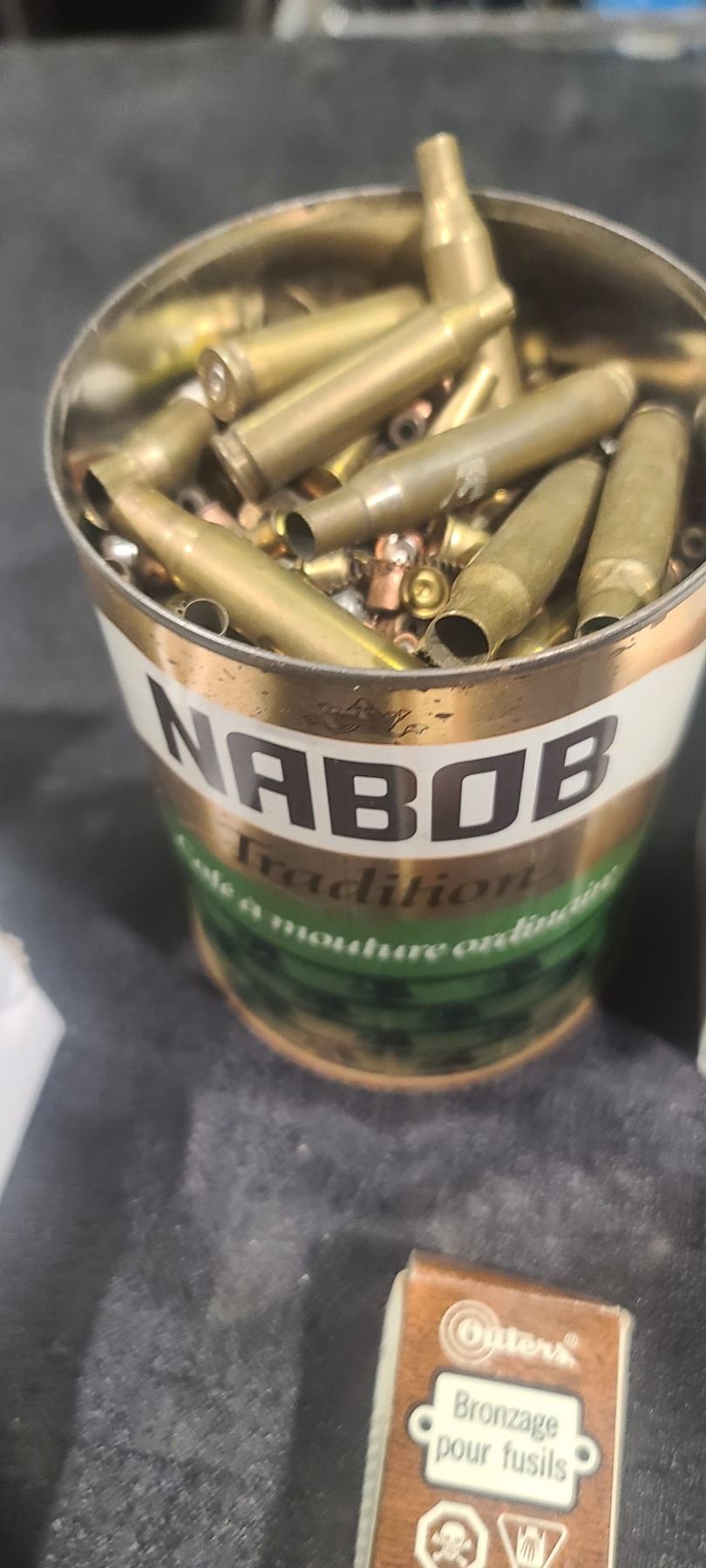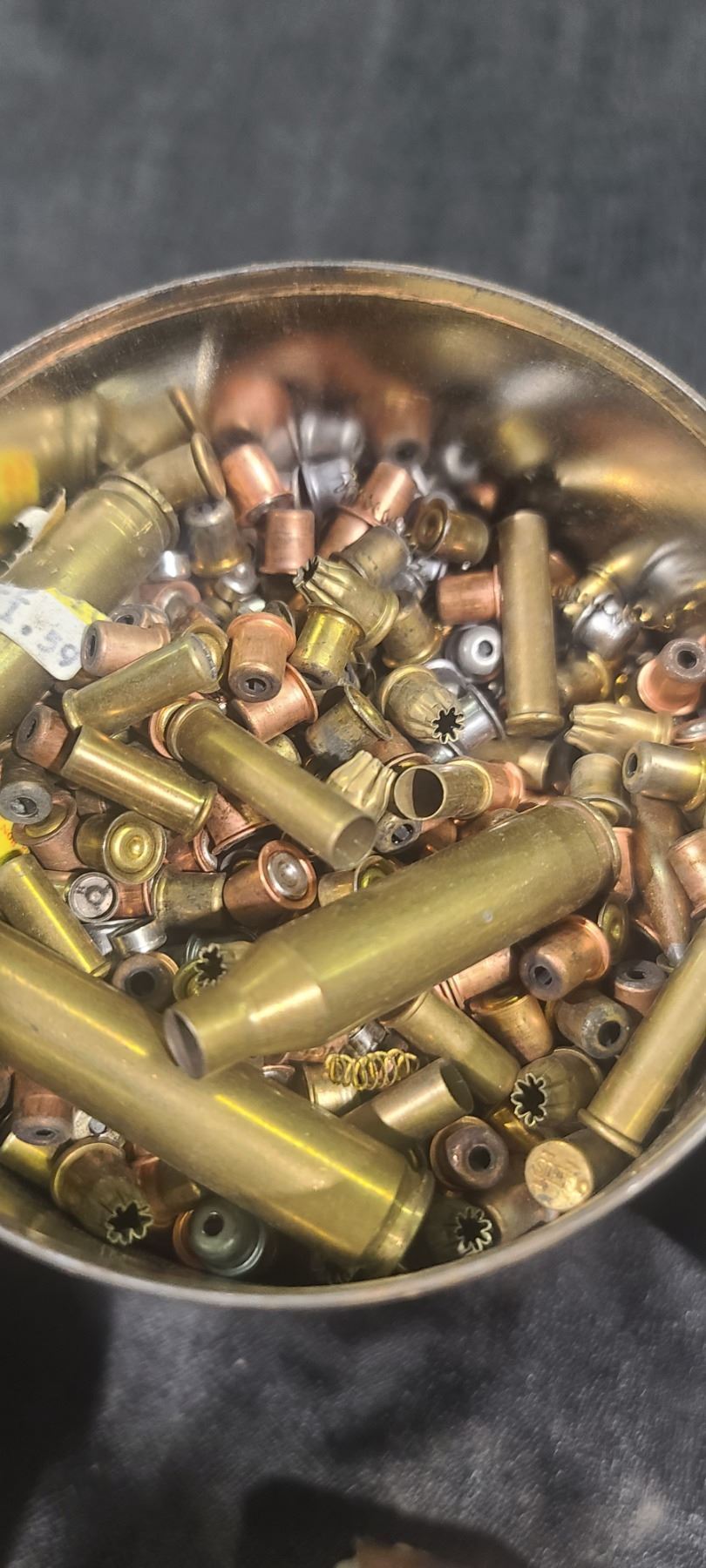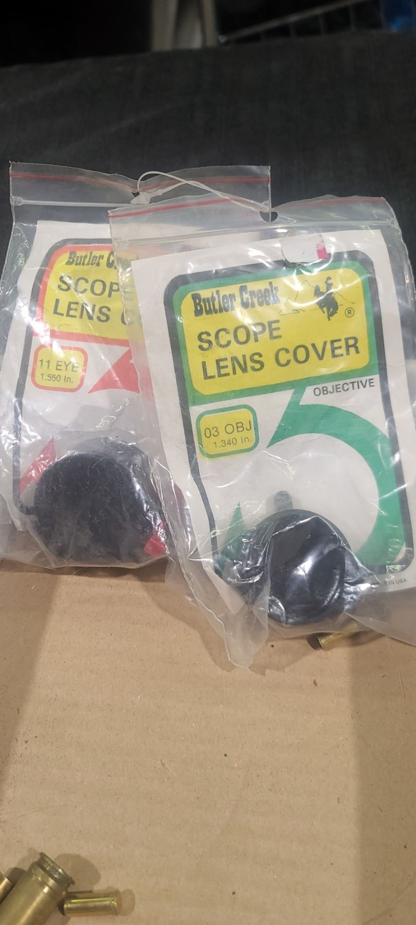 MISC FLAT: TWO BOXES OF HAND LOADED 16GA #6 (USE AT OWN RISK), LEE .223 CASE TRIMMER, EMERGENCY MIRROR, CAN OF MISC CASES, DEAD PRIMERS, BUTER CREEK SCOPE CAPS/COVERS