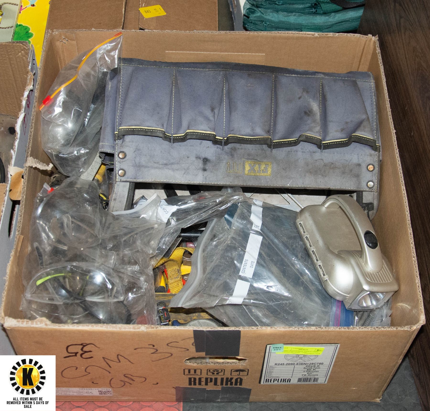 INCL. ASSORTED: TAPE MEASURES; STRING LINE; SAFETY GLASSES; TOOL CADDY - NO RIPS; SPEED SQUARE; 20PCS HACKSAW BLADES; 12" PIPE WRENCH; FLASHLIGHT SOCKET SET; + ETC. **ALL ITEMS MUST BE REMOVED BY 5PM SATURDAY, APRIL 22ND, 2023. ALL REMAINING ITEMS WILL BE SUBJECT TO A $6.00 PER DAY STORAGE CHARGE. ANY ITEMS REMAINING AFTER MONDAY, MAY 8TH, 2023 WILL BE CONSIDERED FORFEITED. NO REFUNDS WILL BE ISSUED FOR FORFEITED ITEMS.** TO SCHEDULE A PICK UP APPOINTMENT CLICK HERE