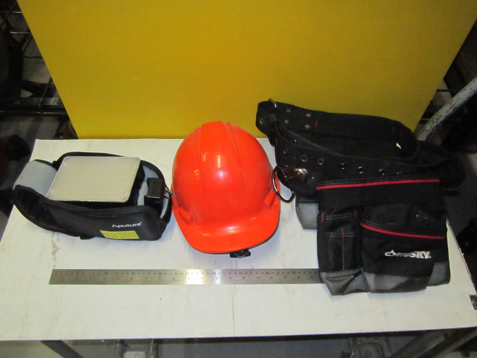 MISC. HARD HAT, HUSKY TOOL BELT, CORDLESS LIGHT