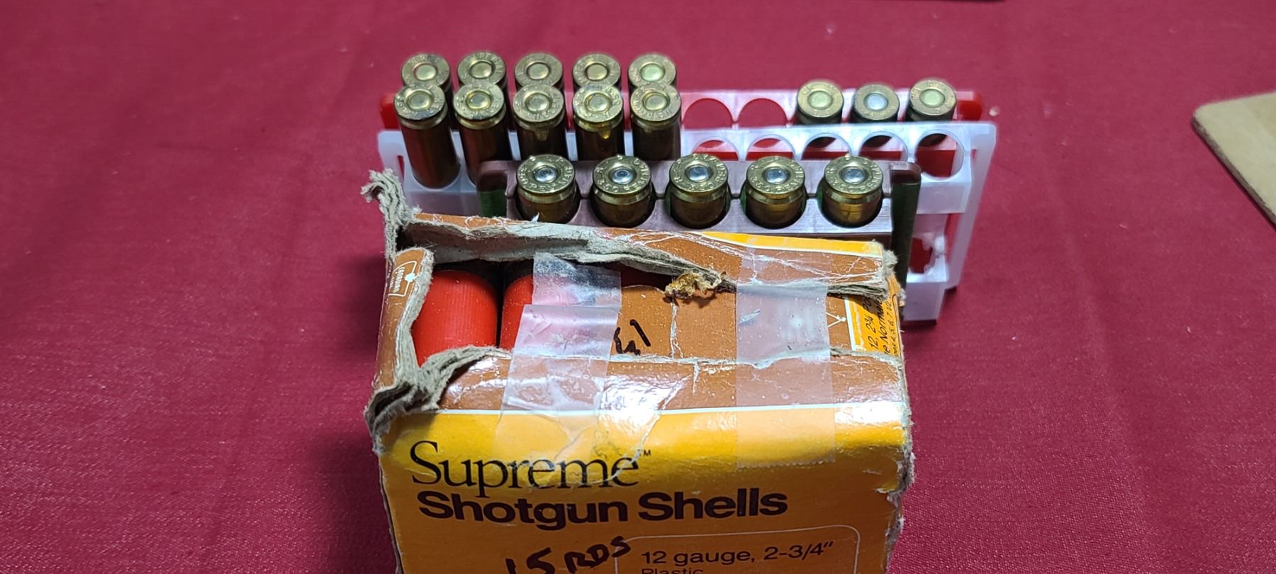 MISC LEFT OVER AMMUNITION: 15 ROUNDS OF 2 3/4" 12GA. FIVE 8MM, THREE .243, FIVE .35 WHELEN, FIVE 350