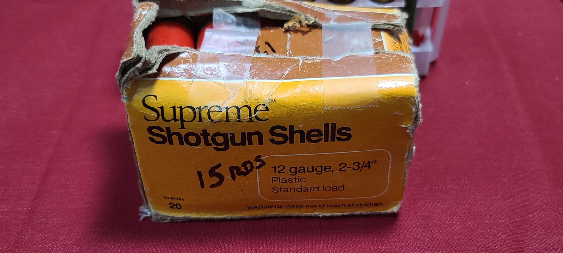 MISC LEFT OVER AMMUNITION: 15 ROUNDS OF 2 3/4" 12GA. FIVE 8MM, THREE .243, FIVE .35 WHELEN, FIVE 350 REM MAG,