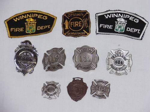 MISC. LOT (10) PCS. FIRE RELATED ITEMS INCLUDING PATCHES, HAT BADGES, WATCH FOB, ETC. - ALL CANADIAN;