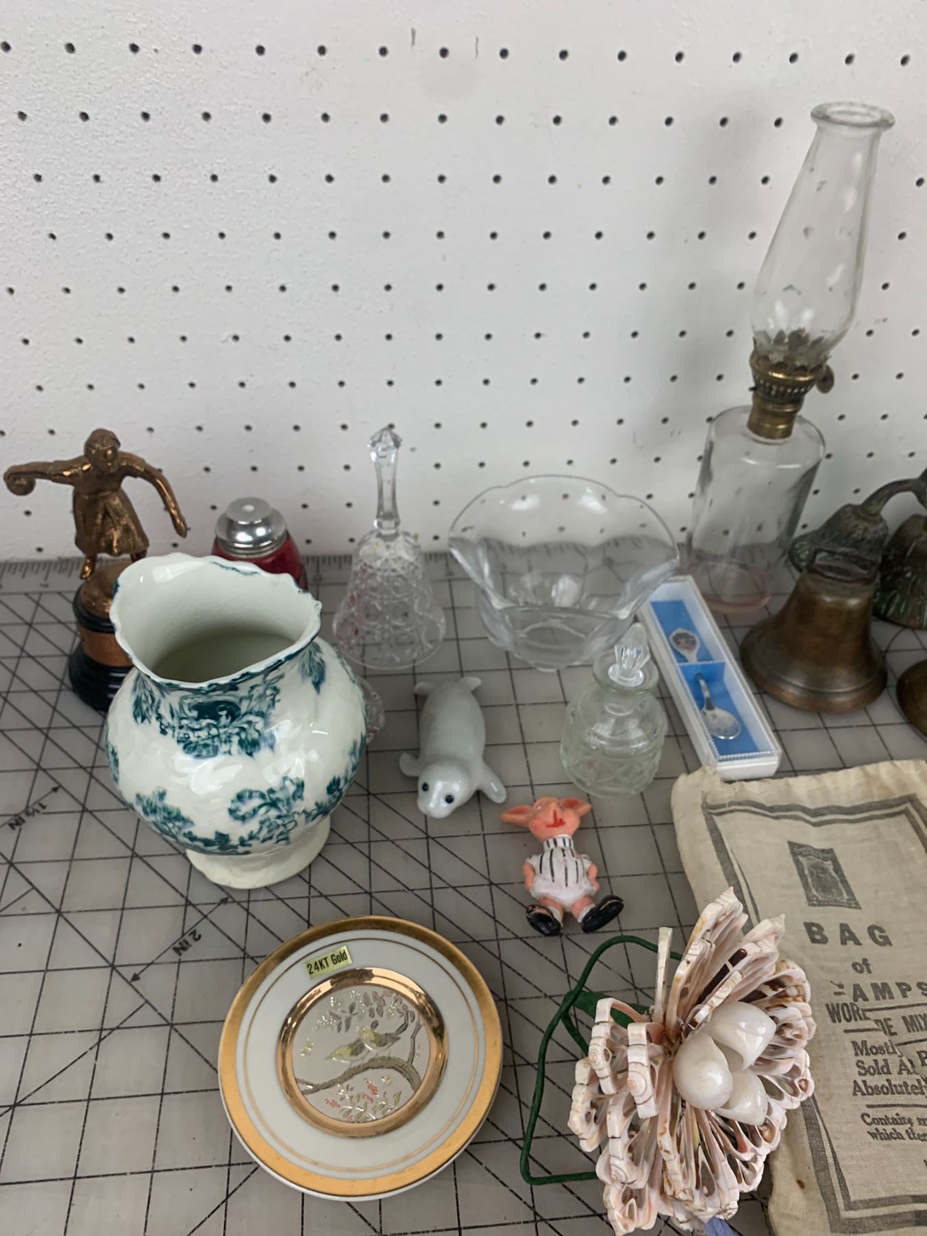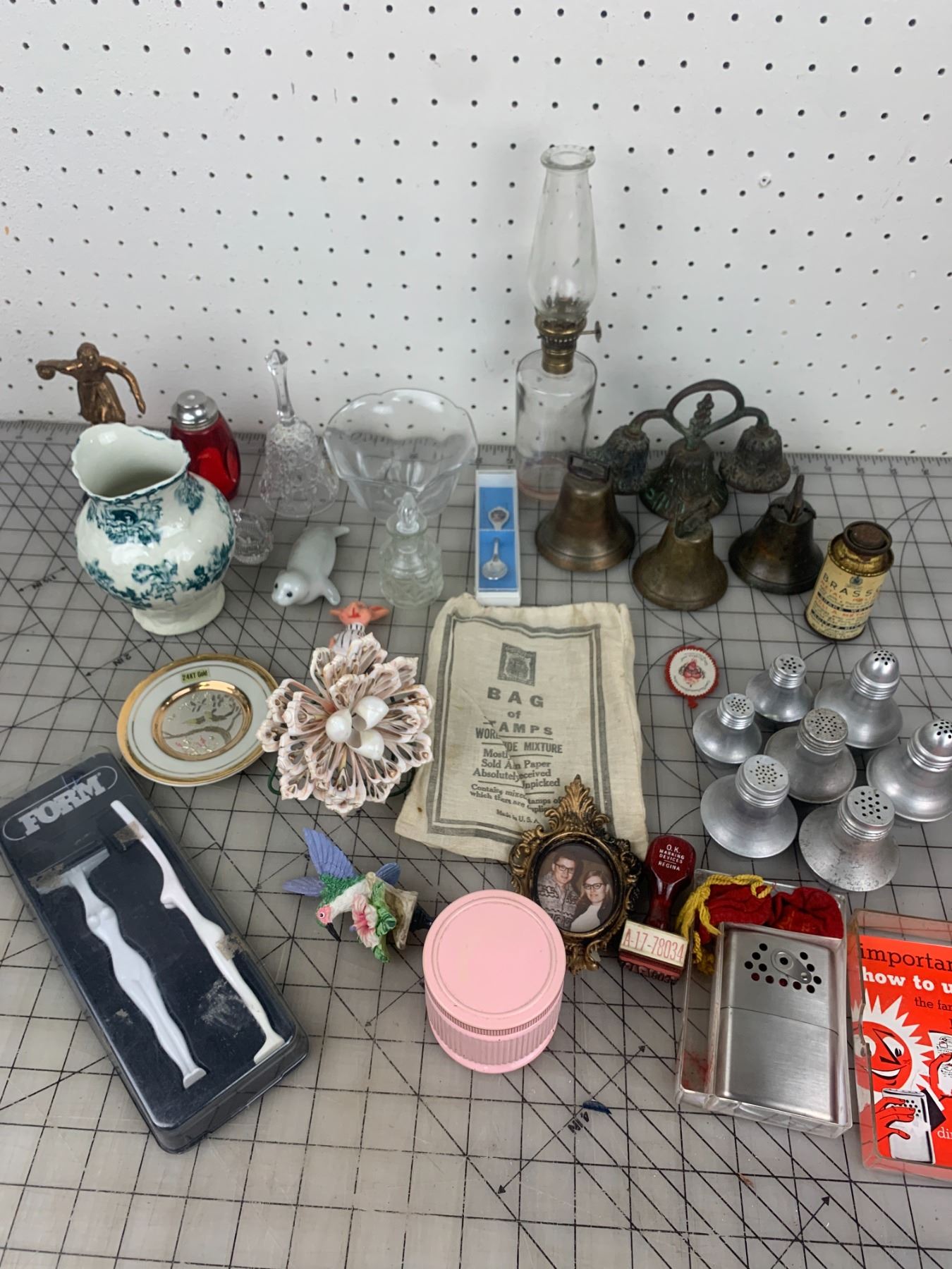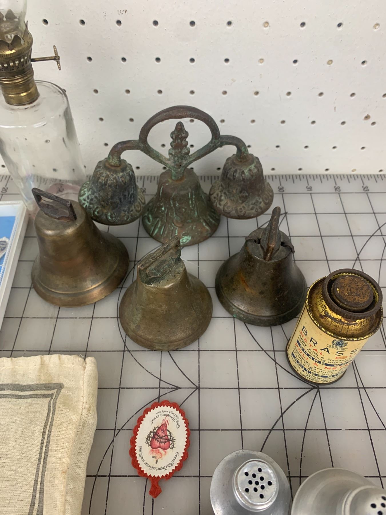 MISC LOT BRASS BELLS WOMAN MOTIF RAZOR HAND WARMER ETC