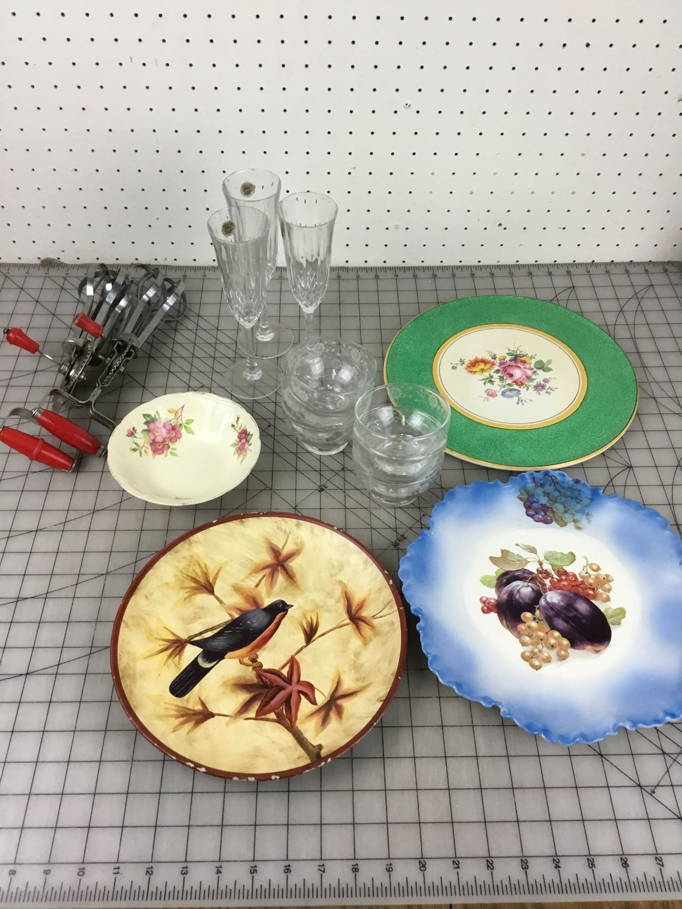 MISC LOT CHINA EGG BEATERS DECORATIVE PLATES ETC