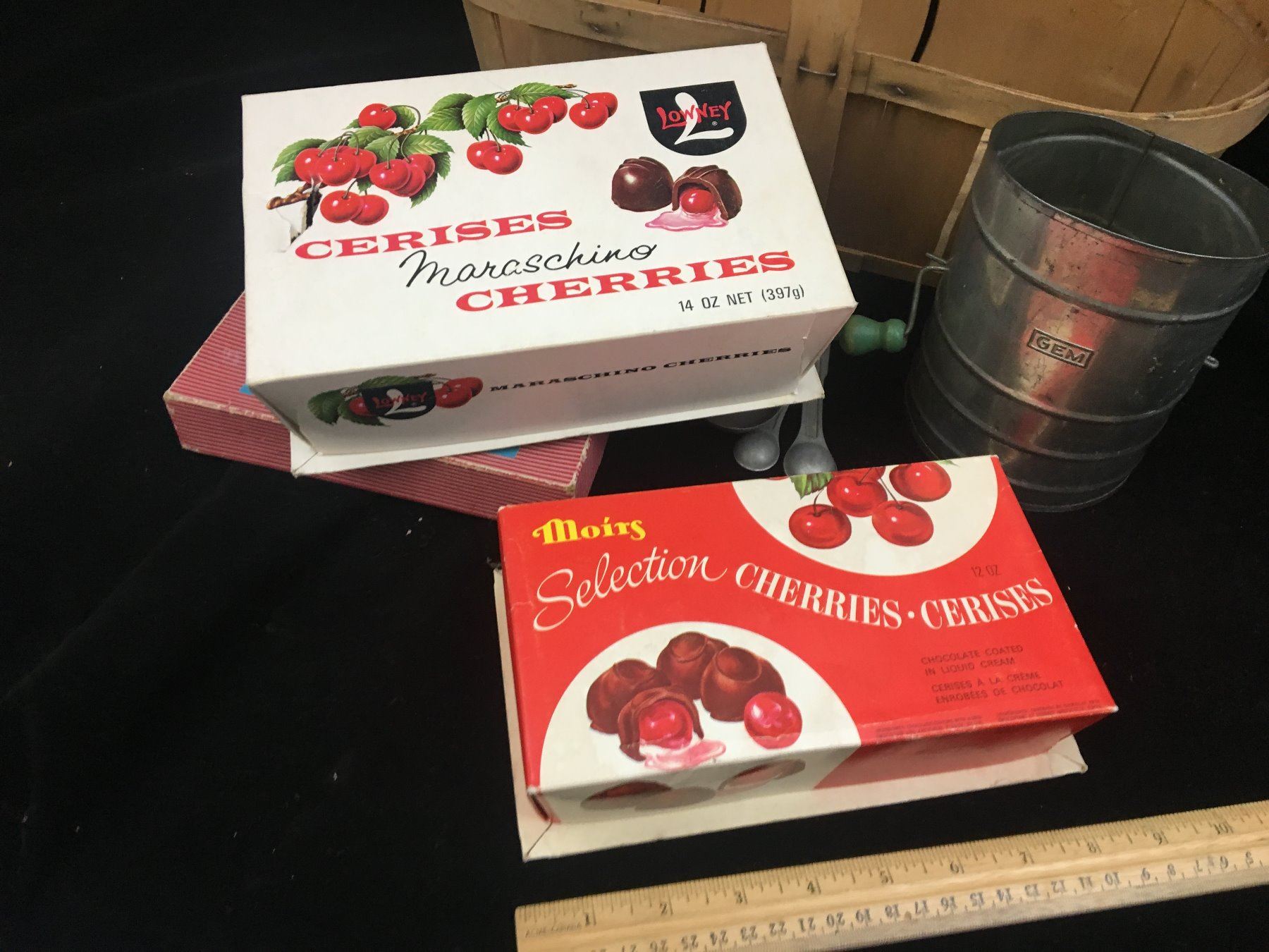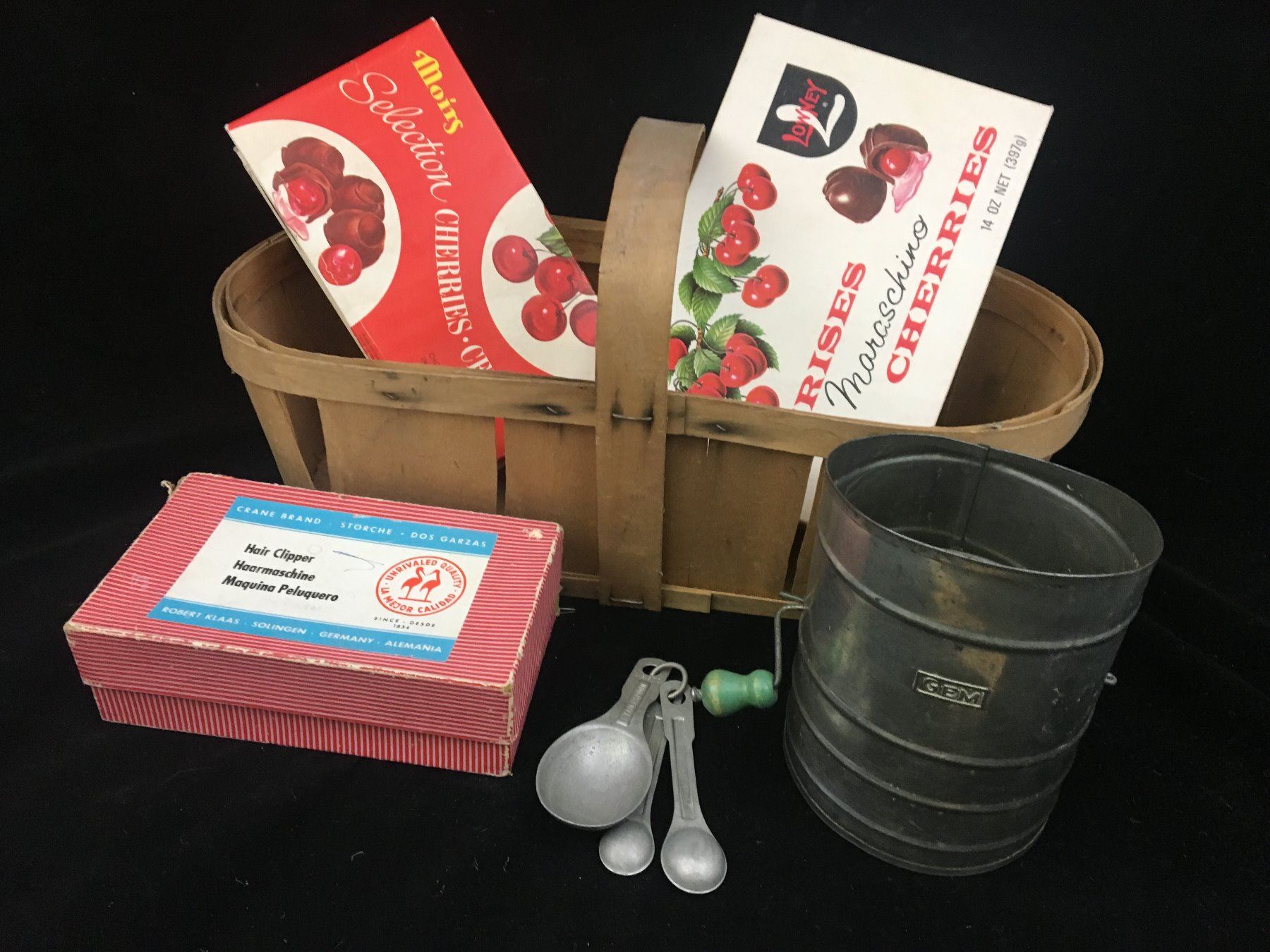 MISC LOT (CHOCOLATE BOXES, CLIPPERS, BASKET)
