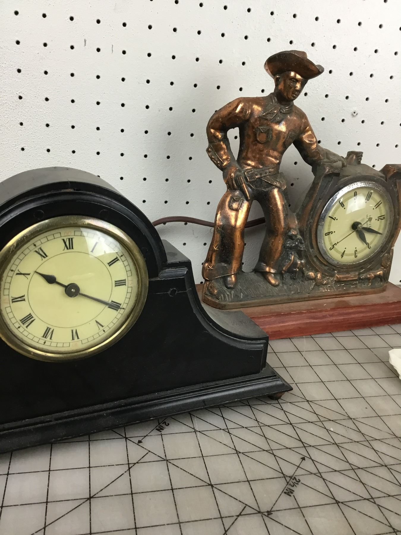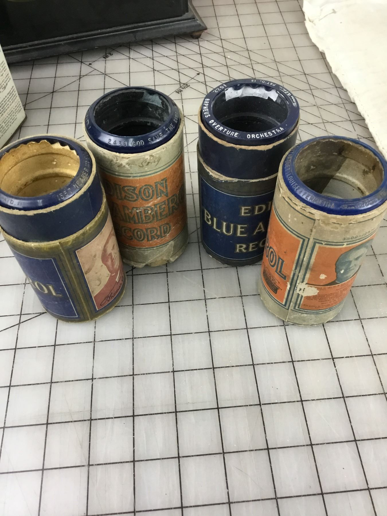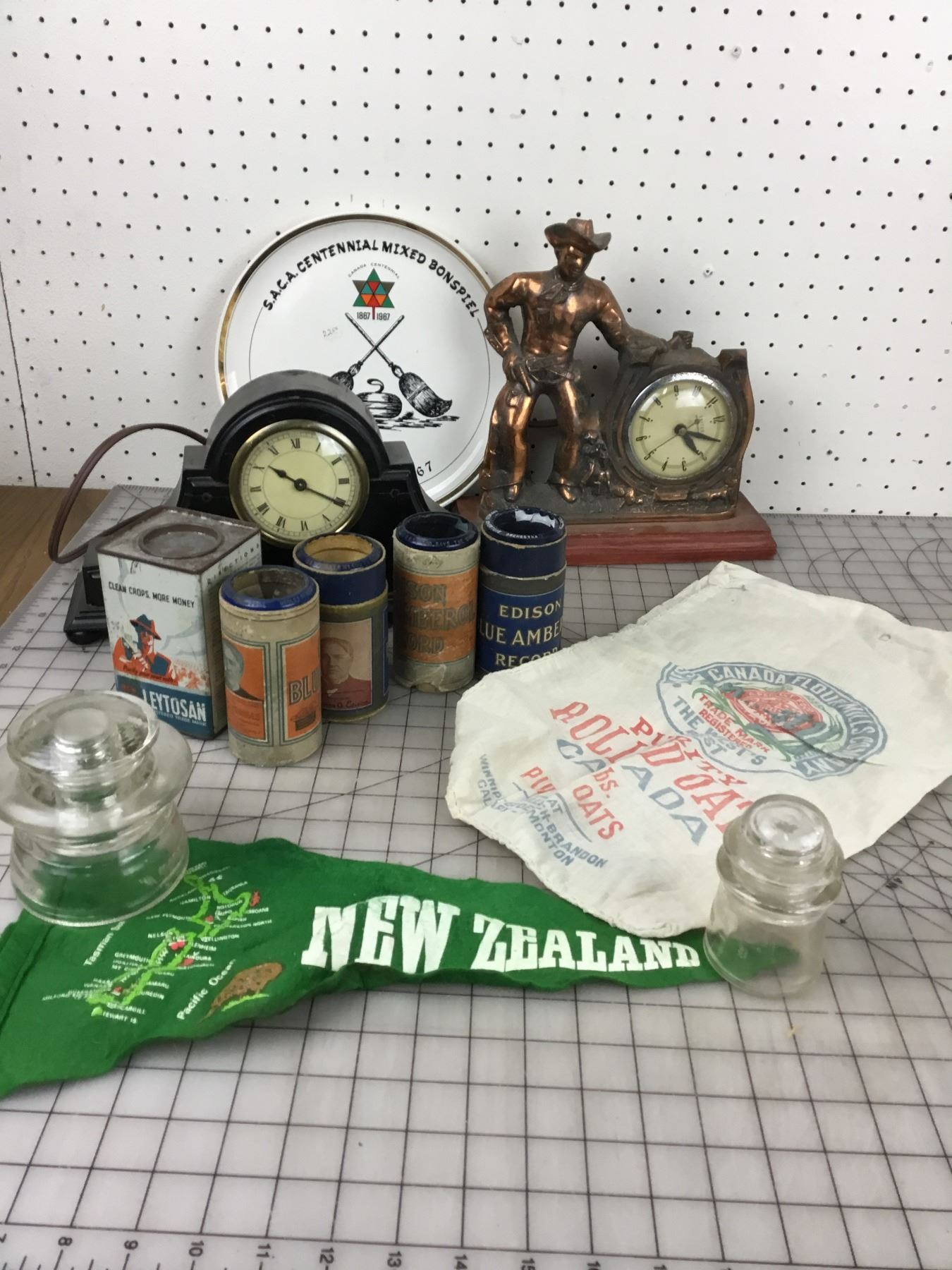 MISC LOT CLOCKS EDISON BLUE AMBEROL CYLINDER RECORDS ETC
