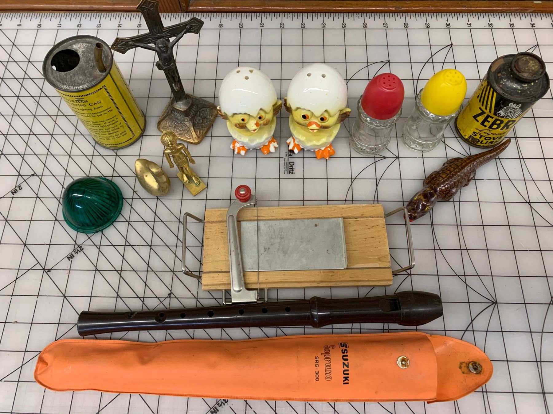MISC LOT COLEMAN CAN RECORDER SALT AND PEPPERS ETC