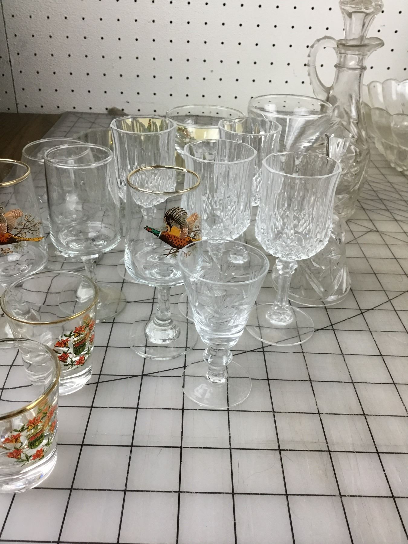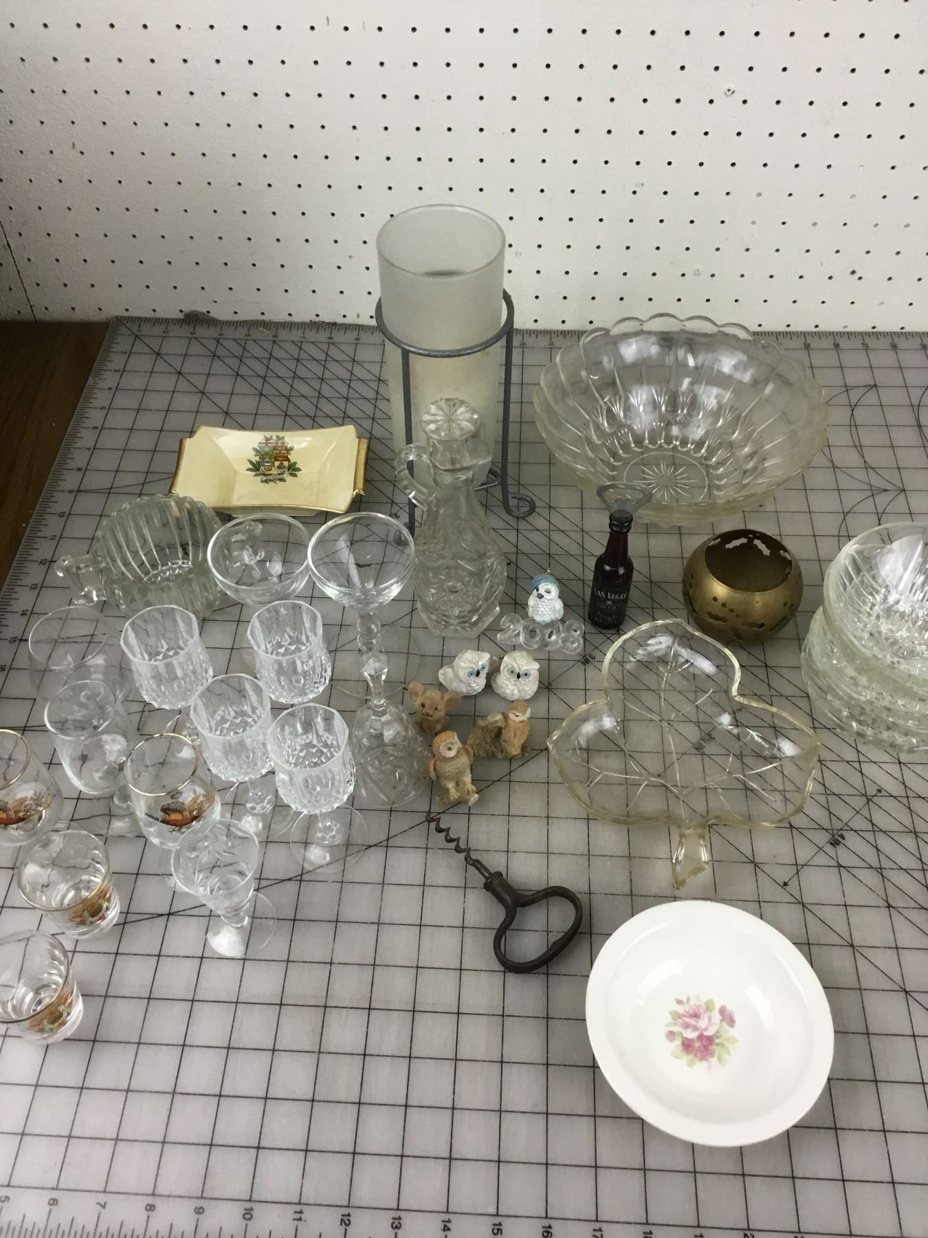MISC LOT GLASS SHOT GLASSES CANDLE HOLDERS ETC
