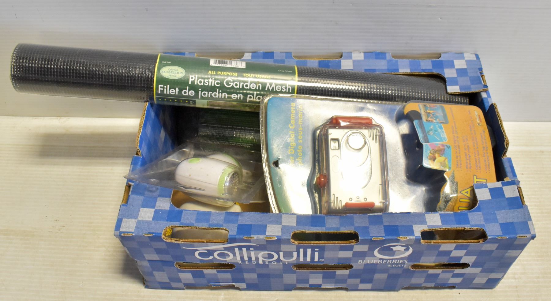 MISC LOT: INCLUDES UNDERWATER DIGITAL CAMERA, WOOD