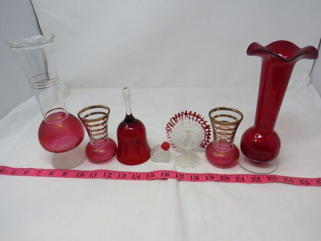 MISC. LOT OF INDIANA GLASS (VASES, BELL, TURKEY, ETC…)