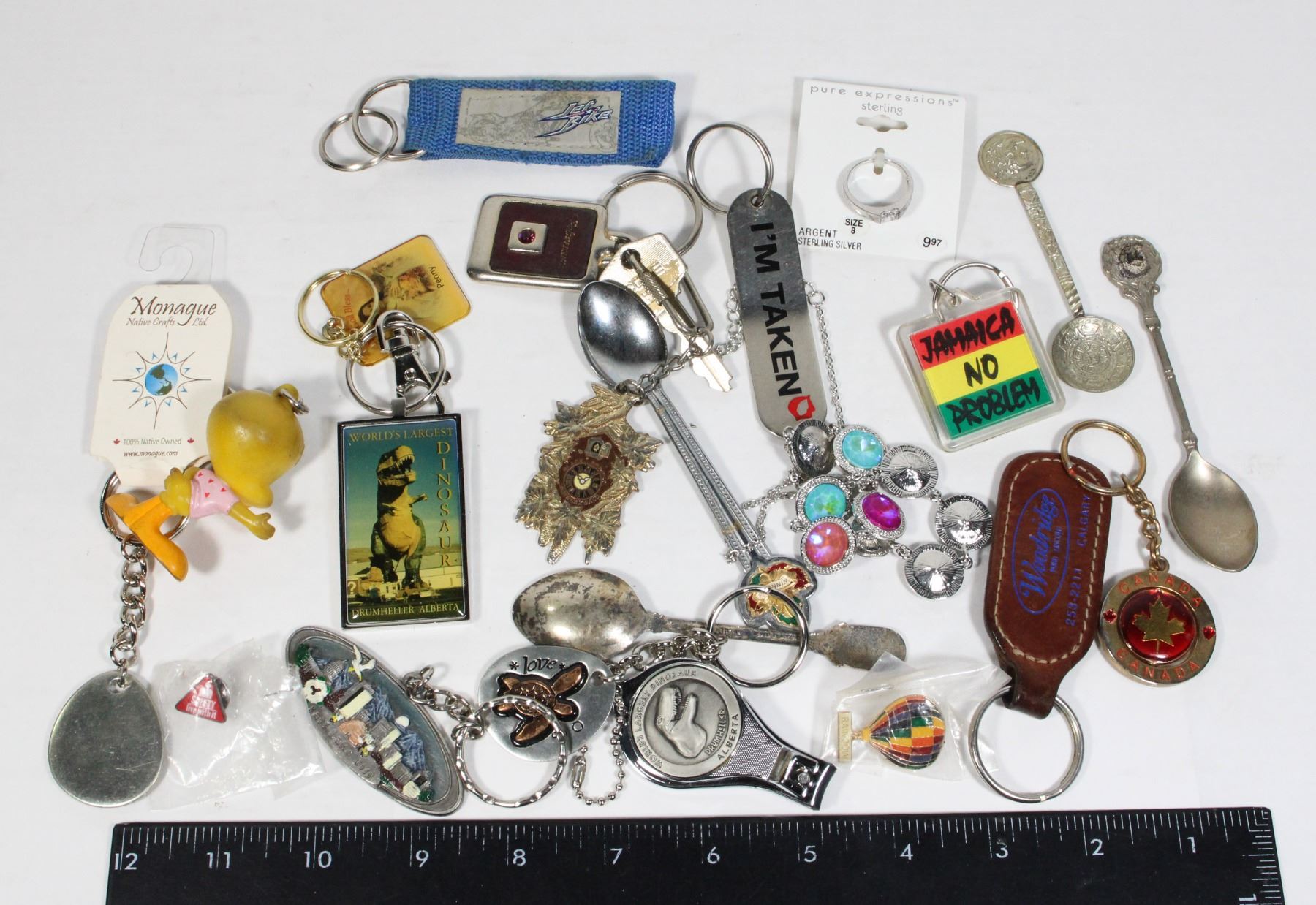 MISC. LOT OF KEY CHAINS, VINTAGE SPOONS AND MORE!