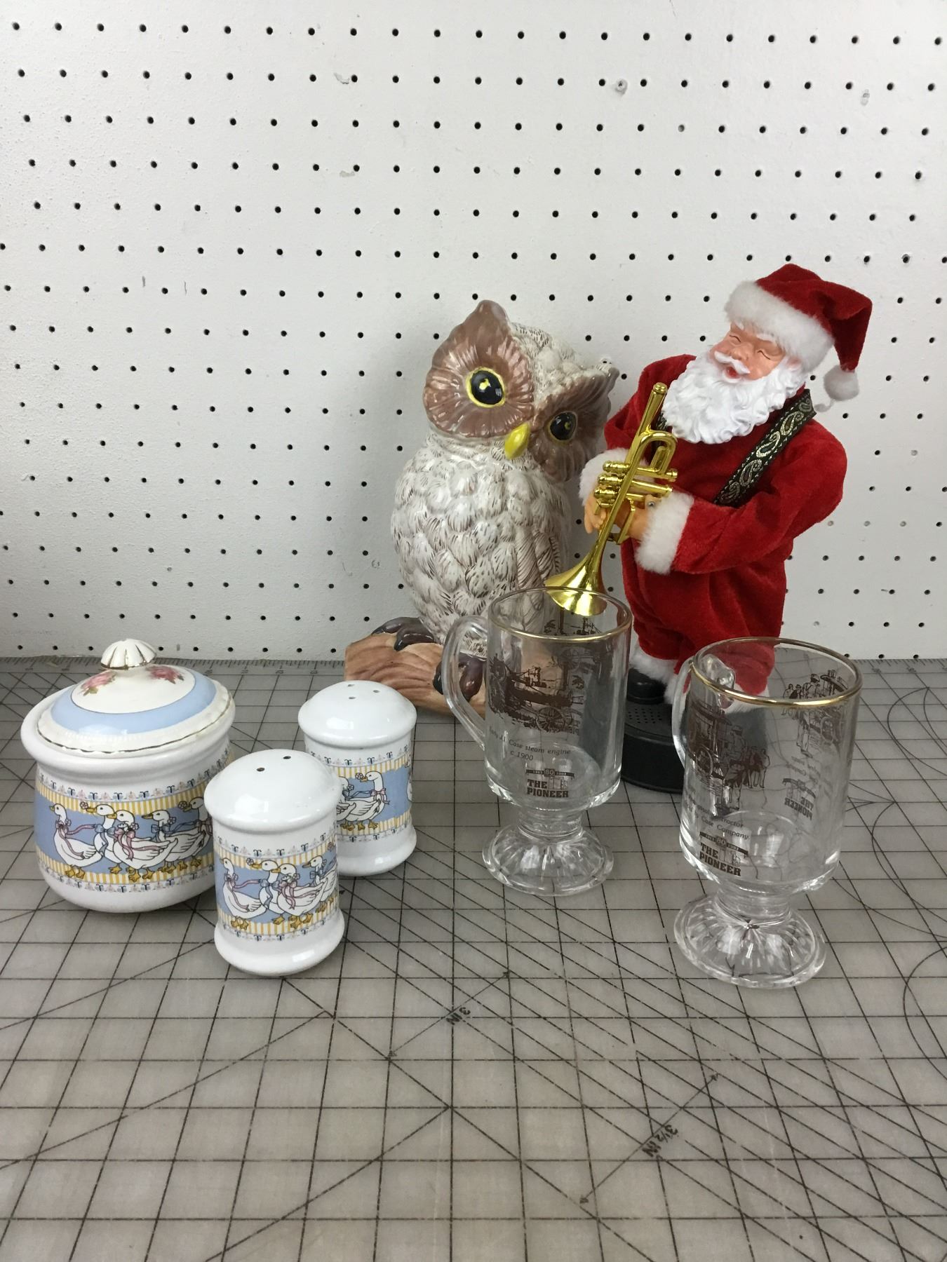 MISC LOT SANTA PIONEER GLASSES RIBBON GEESE ETC