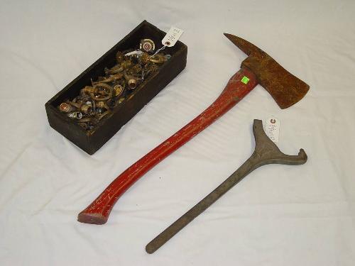 MISC. LOT TO INCLUDE BRASS SPRINKLER HEADS, 27 1/2" FIREMENS AXE & 18" WOOSTER FIRE HYDRANT WRENCH - NORMAL WE