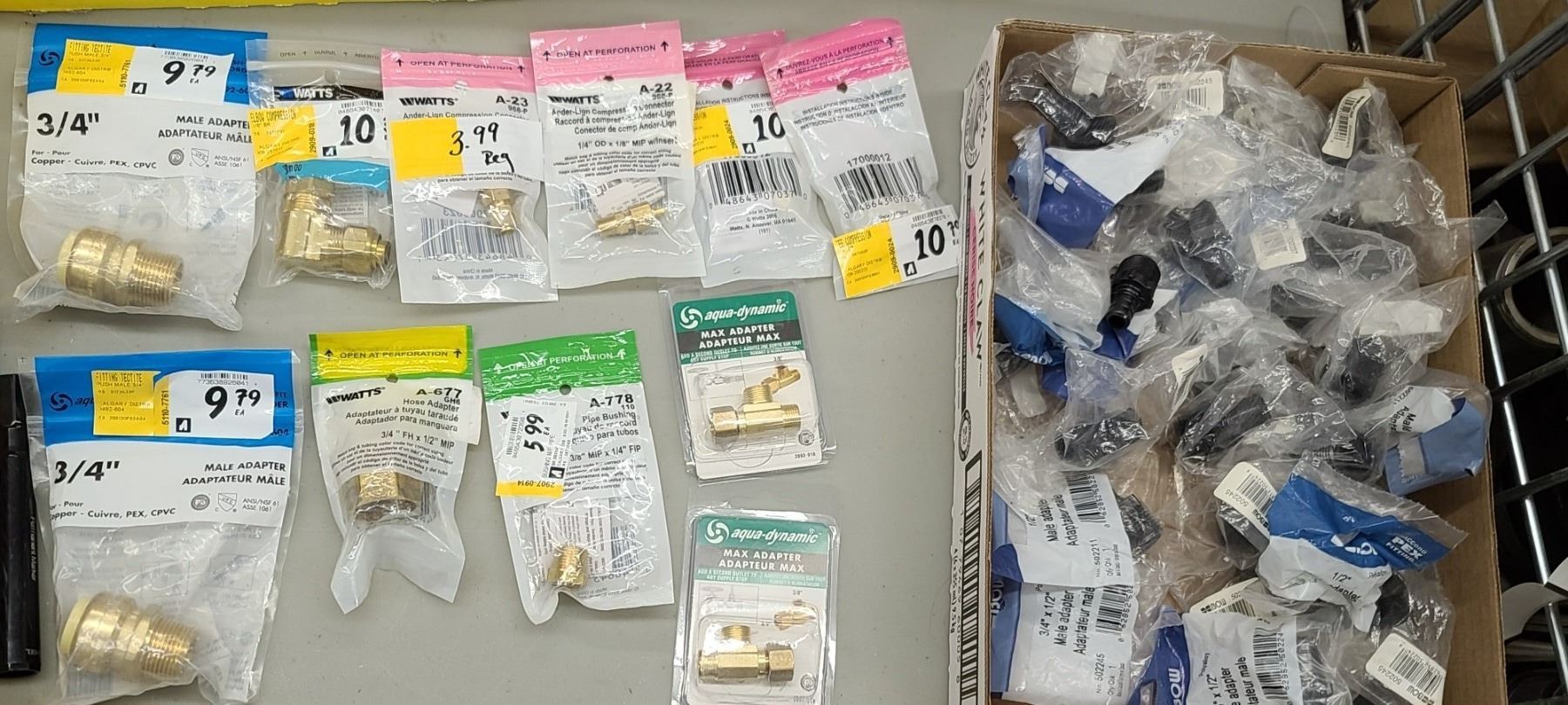 MISC MALE ADAPTERS BRASS AND PLASTIC. PLEASE SEE IMAGES
