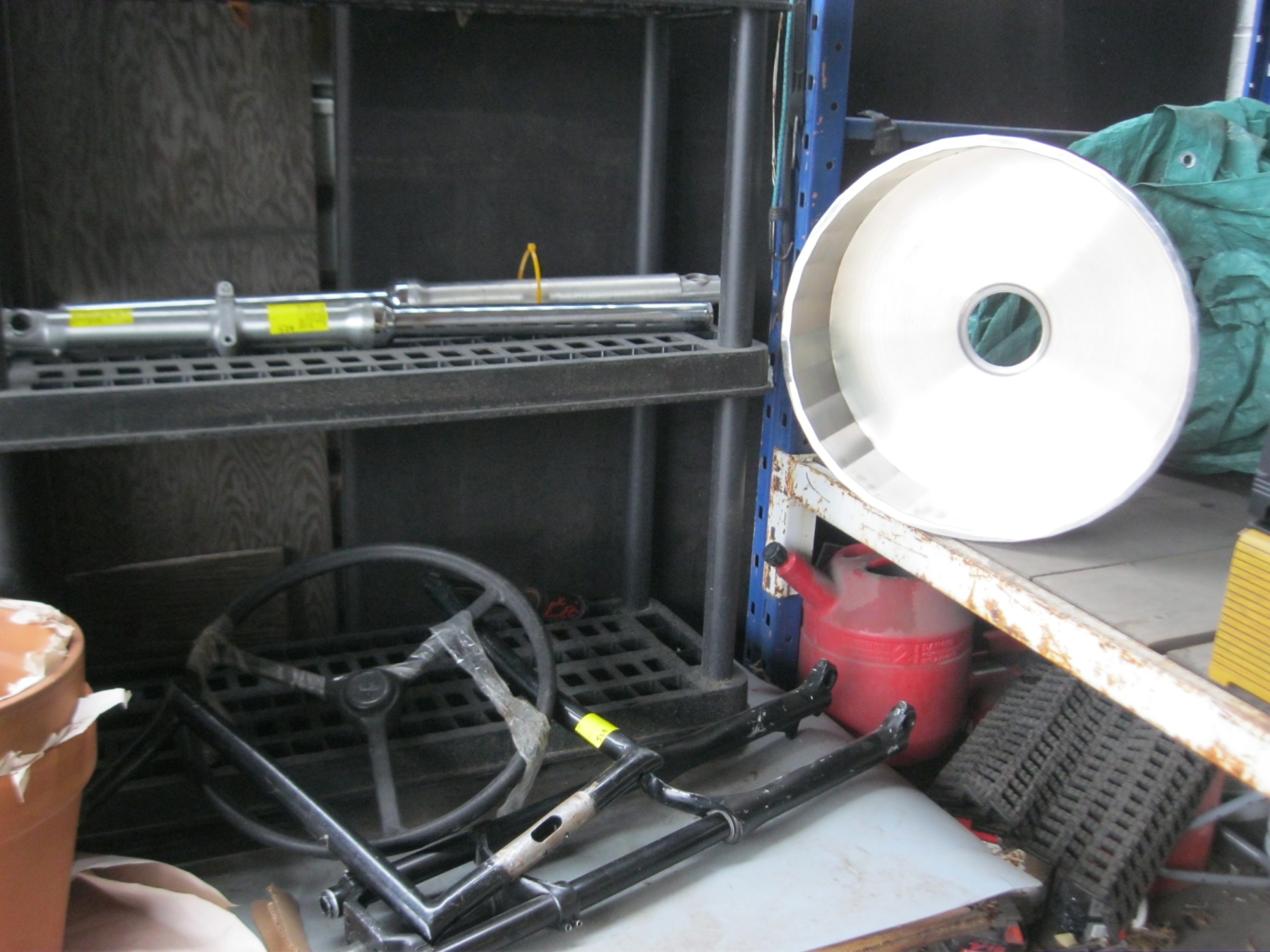 MISC. MOTORCYCLE PARTS, ROUNDS STAINLESS SINK, ETC.