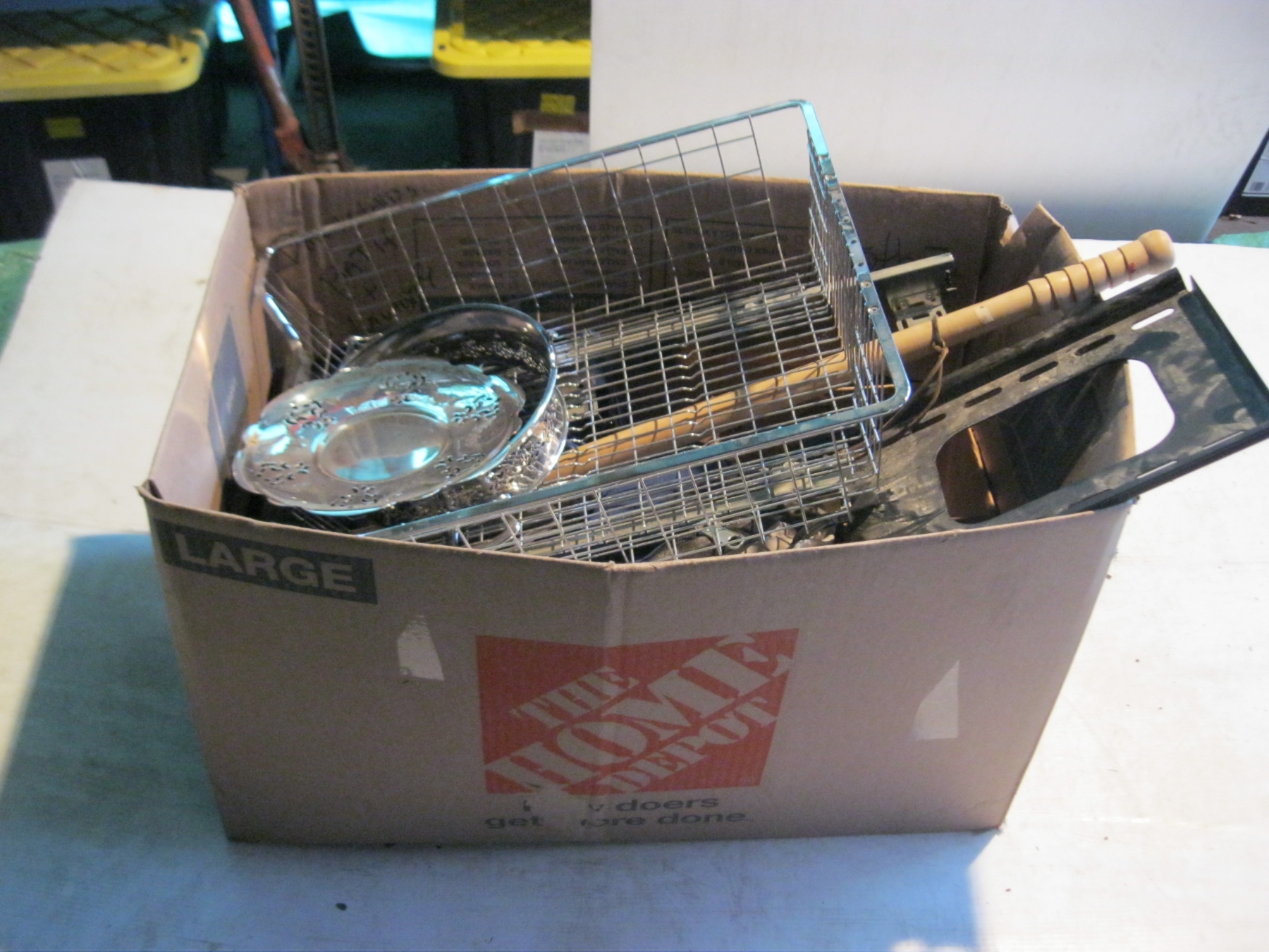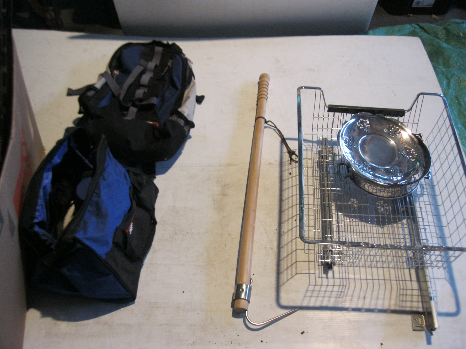 MISC. SILVER PLATE, WIRE BASKET, BACKPACK, ETC.