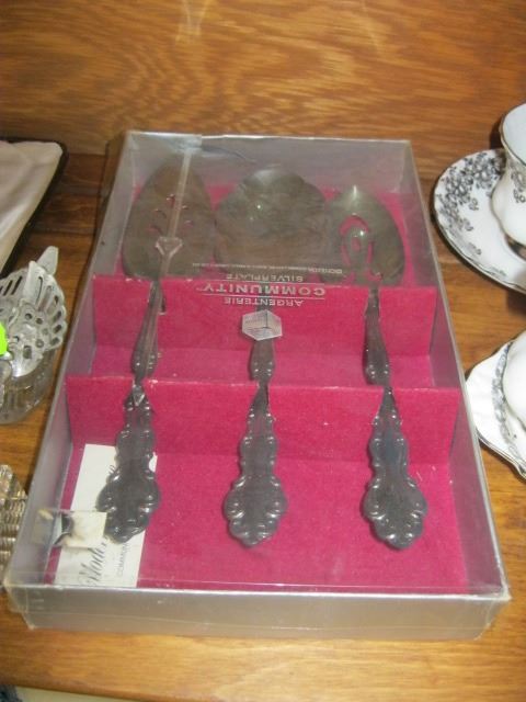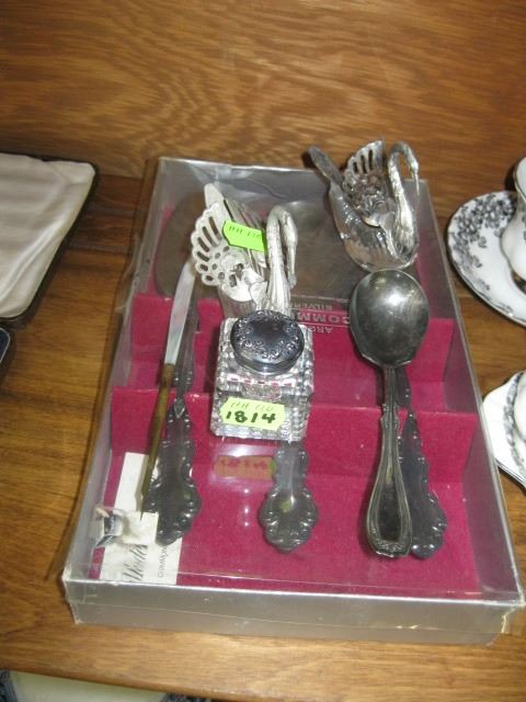 MISC: SILVERPLATE SERVING SET, SWAN SALT BOWLS, ETC.