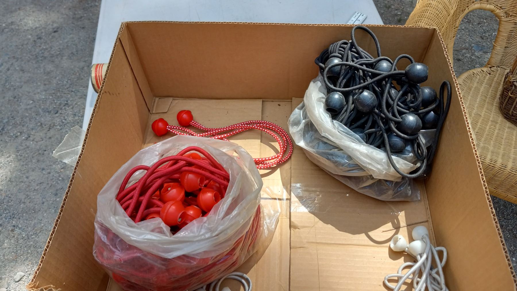 MISC. TARP TIEDOWNS & PALCO TIRE INFLATOR & FIRE EXTINGUISHER