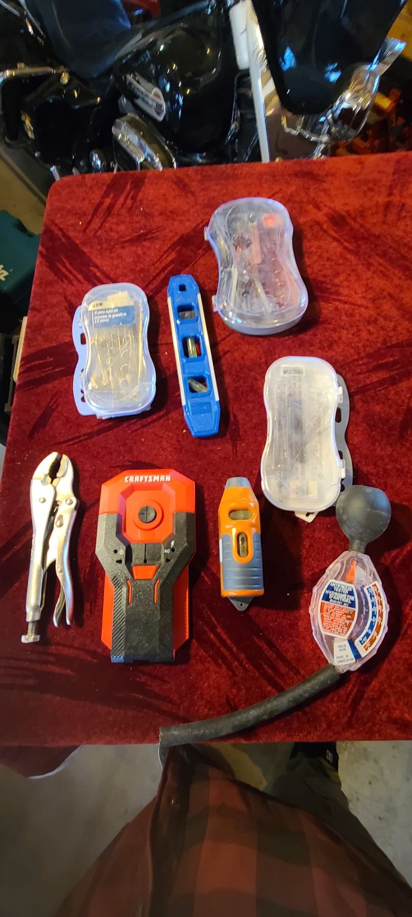 MISC TOOL, STUD FINDER, LEVEL, ANTI FREEZE TESTER, VISE GRIPS