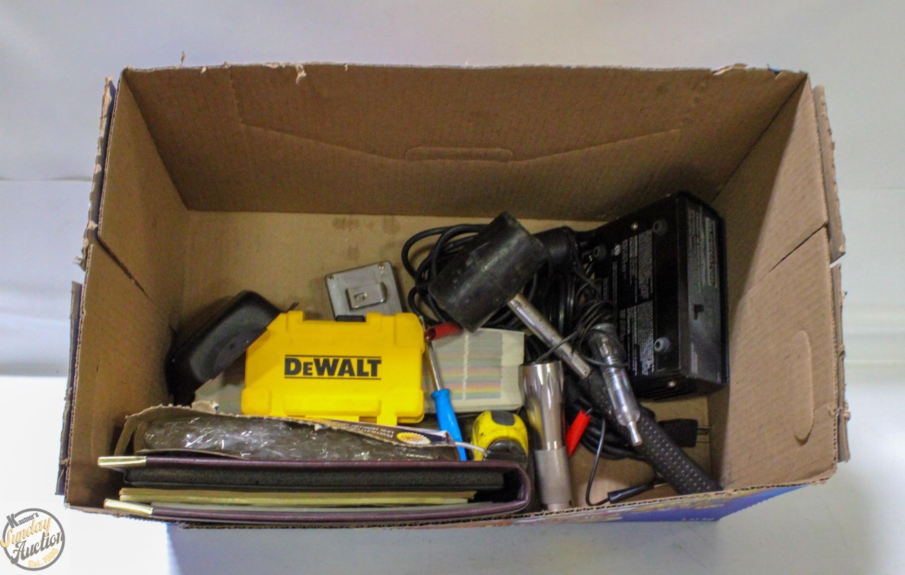 BATTERY CHARGER, DERMAL TOOL, FLASH LIGHT, MALLET, TAPE MEASURES, PAINT CHART **ALL ITEMS MUST BE REMOVED BY 5PM SATURDAY, DECEMBER 6TH 2025. ALL REMAINING ITEMS WILL BE SUBJECT TO A $6.00 PER DAY STORAGE CHARGE. ANY ITEMS REMAINING AFTER MONDAY, DECEMBER 22ND 2025 WILL BE CONSIDERED FORFEITED. NO REFUNDS WILL BE ISSUED FOR FORFEITED ITEMS. TO SCHEDULE A PICK UP APPOINTMENT