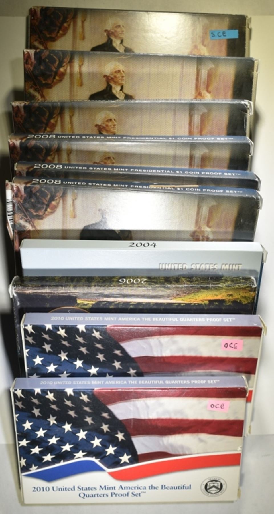 2004 & 2006 WESTWARD JOURNEY NIKELS, 2-PROOF 2010 ATB QUARTERS & 6-2008 PROOF PRESIDENTIAL ESTIMATE $90 - $110.