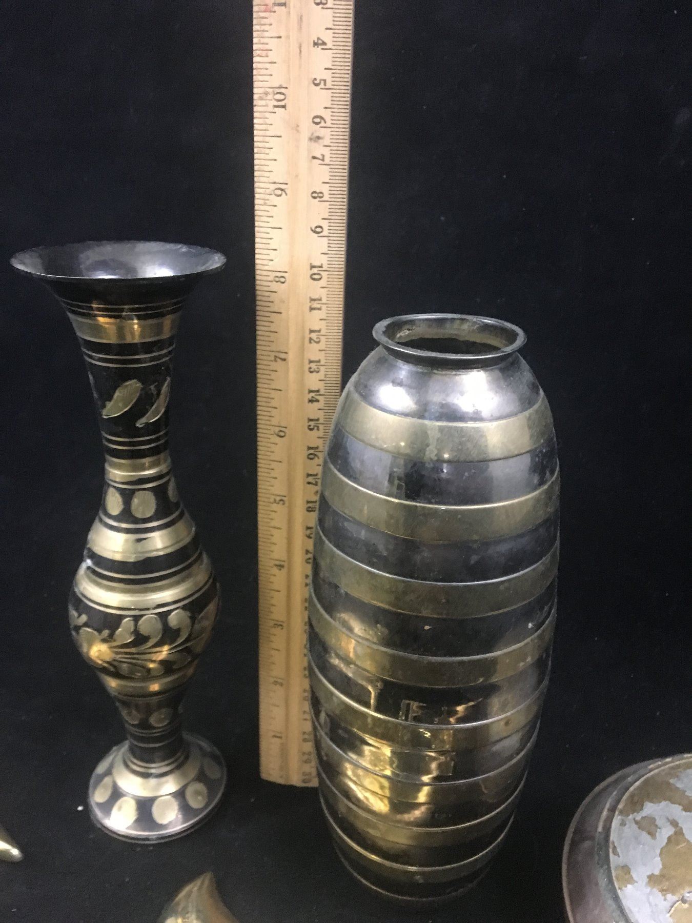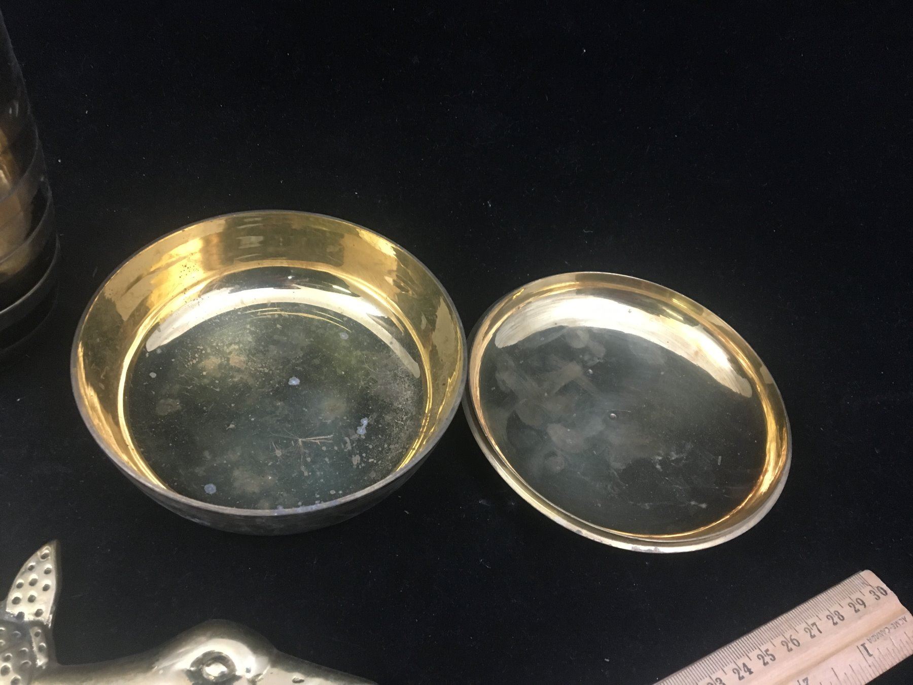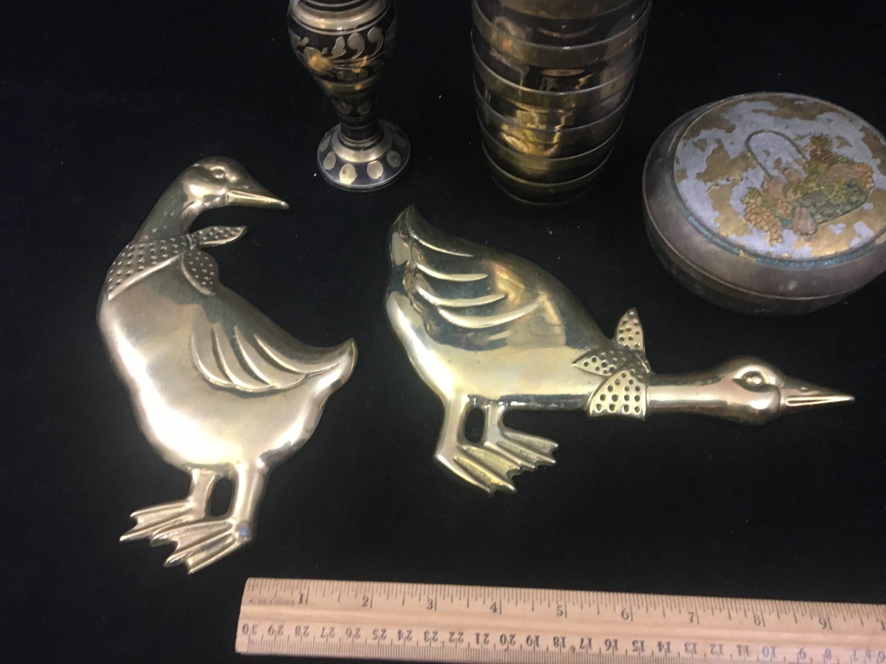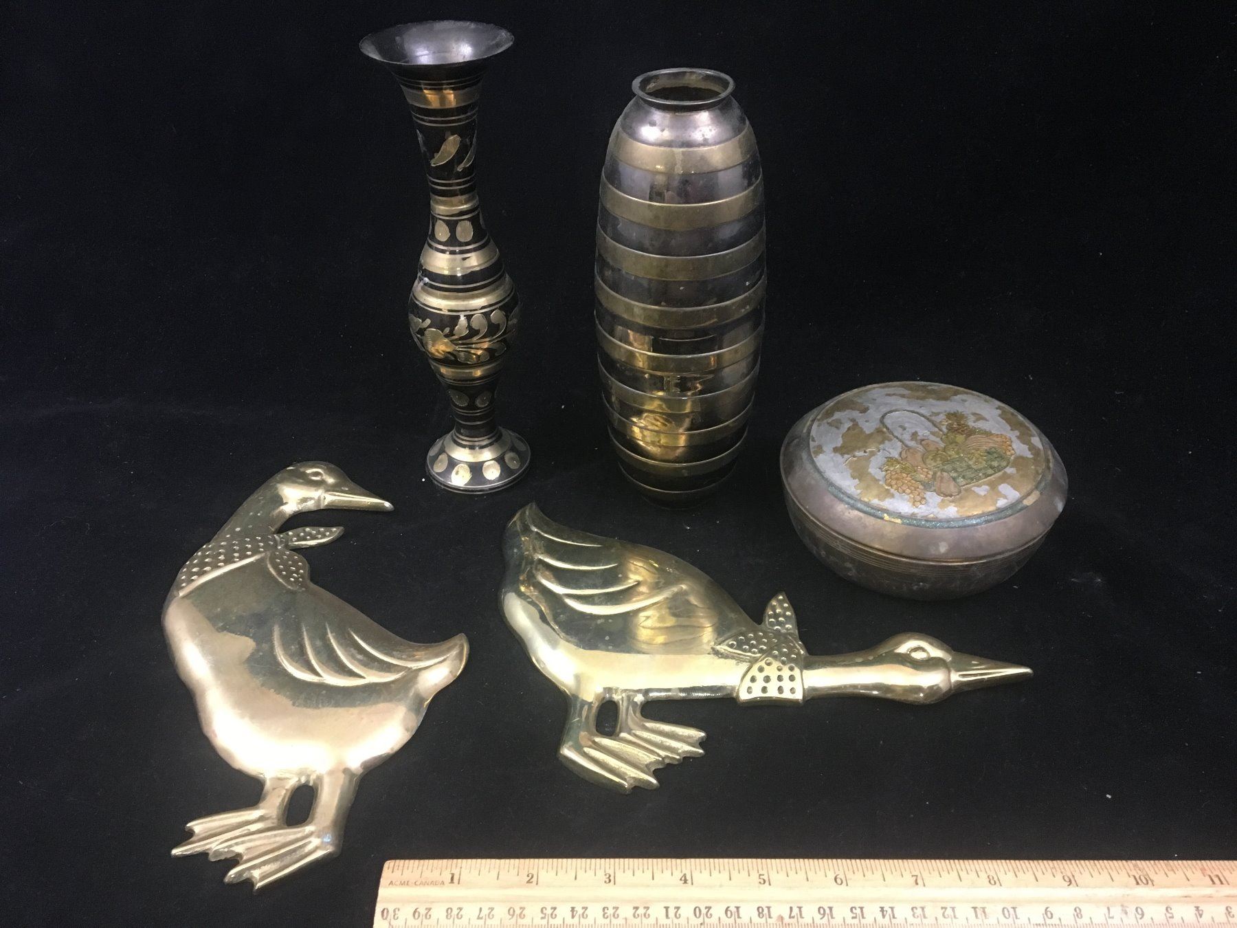 MISC VINTAGE BRASS LOT (VASES, DISH, GEESE)