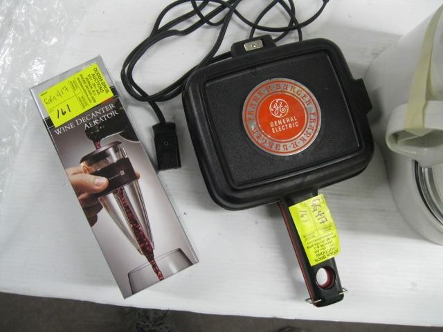 MISC. WINE DECANTER AERATOR, ELECTRIC BURGER COOKER, COFFEE MAKER