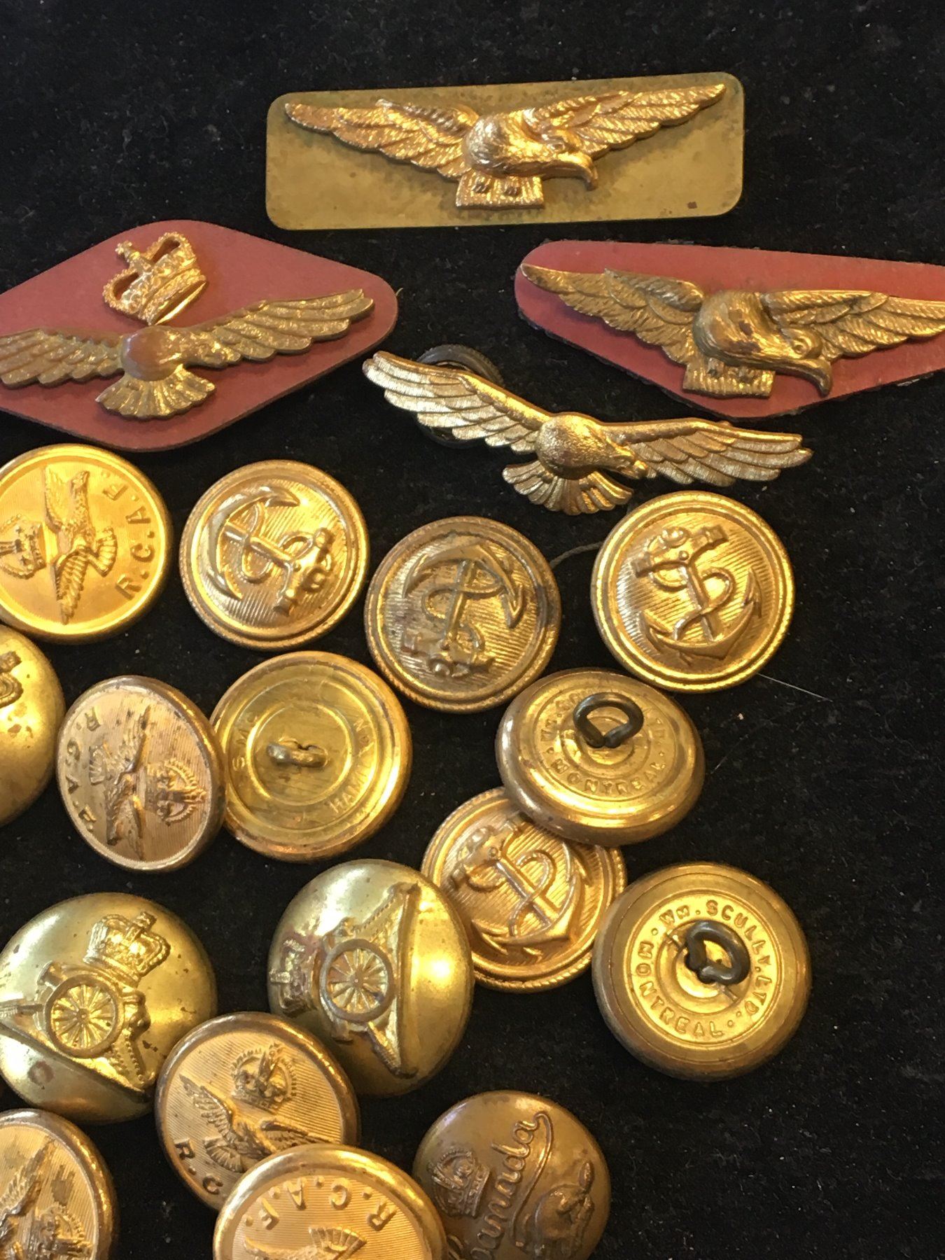 NICE LOT OF RCAF,NAVY AND RCHA BUTTONS ETC