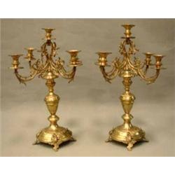 1 PAR KANDELABRAR, MÄSSING, 4 SVÄNGDA GENOMBRUTNA LJUSARMAR, 4 ROCAILLEFORMADE FÖTTER, NYRENÄSSANS, C. 1890, H48